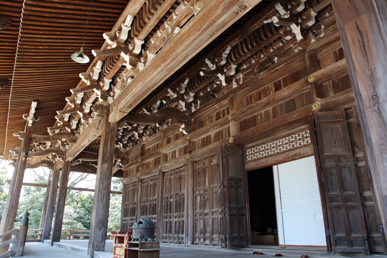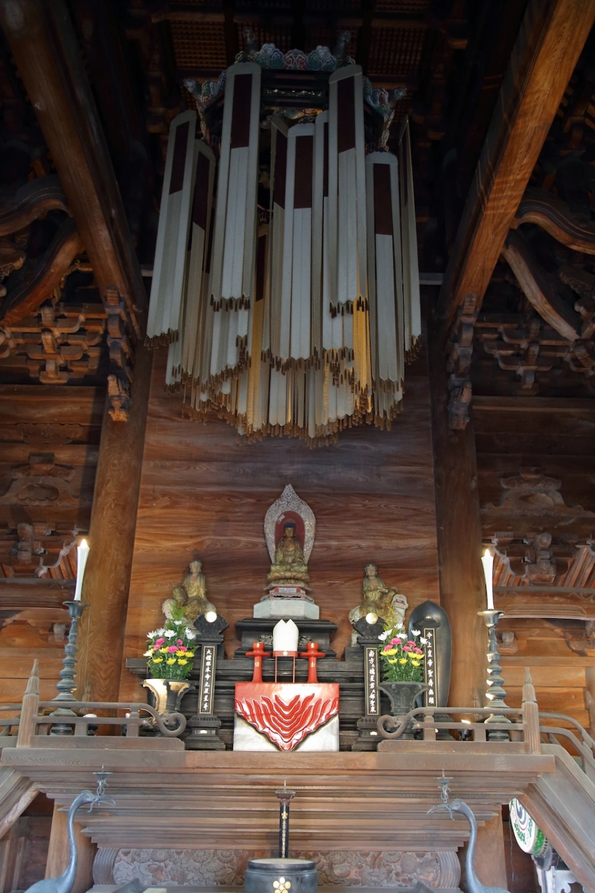 こちらの山門と佛堂、法堂は国宝に指定されています。また、平野に作ったからこそできたのでしょうが、堂宇が綺麗に正方形の形で回廊で結ばれ、中心に佛殿が配置されています。今までいろんな寺社を回ってきましたが、これだけ綺麗に伽藍が構成されているのは珍しいです。この美しい配置が特徴であることは間違いないでしょう。また、国宝になるだけあって堂宇も立派なものです。あと、かなり珍しいですが、法堂には東司(トイレ)の神様である烏枢沙摩明王が祀られています。元々は東司に祀られていたようですが、火災で東司を焼失した後に法堂に移されたそうです。