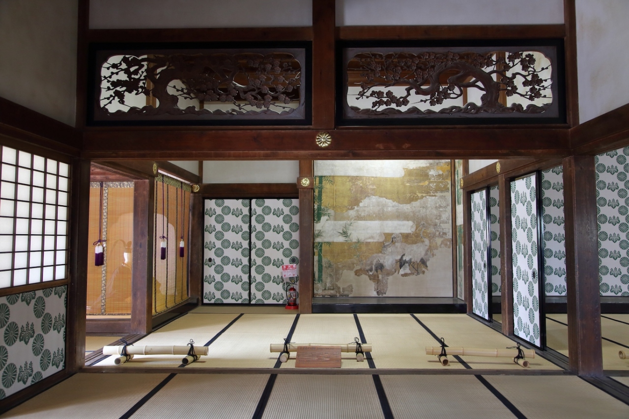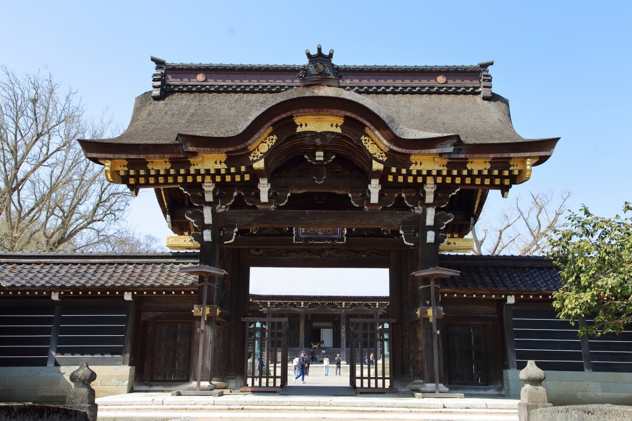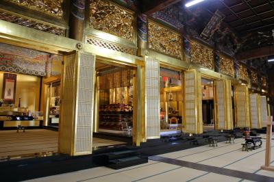 国宝として登録されているのは本堂と大広間・式台ですが、それ以外の建物も重要文化財ばかりです。本堂は本当に巨大で、向拝の虹梁や木鼻も華美ではありませんが、質実剛健な立派なものです。本堂内部は外見と異なり煌びやかで、内陣だけでなく須弥壇や脇檀、脇間、欄間も金箔張りで、当時の前田家の財力、本願寺の影響力の大きさが良く判ります。大広間・式台の内装は煌びやかではありませんが、十分に格式の高さを感じさせるものでした。また、重要文化財である洛中洛外図や、奥書院の金の間も見学できます。なお、金の間は写真撮影は禁止なのでご注意ください。