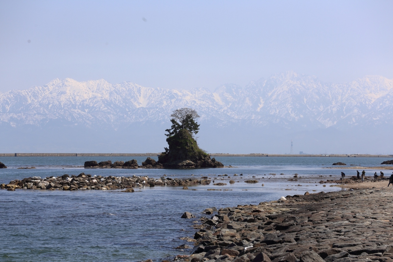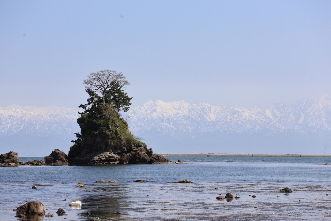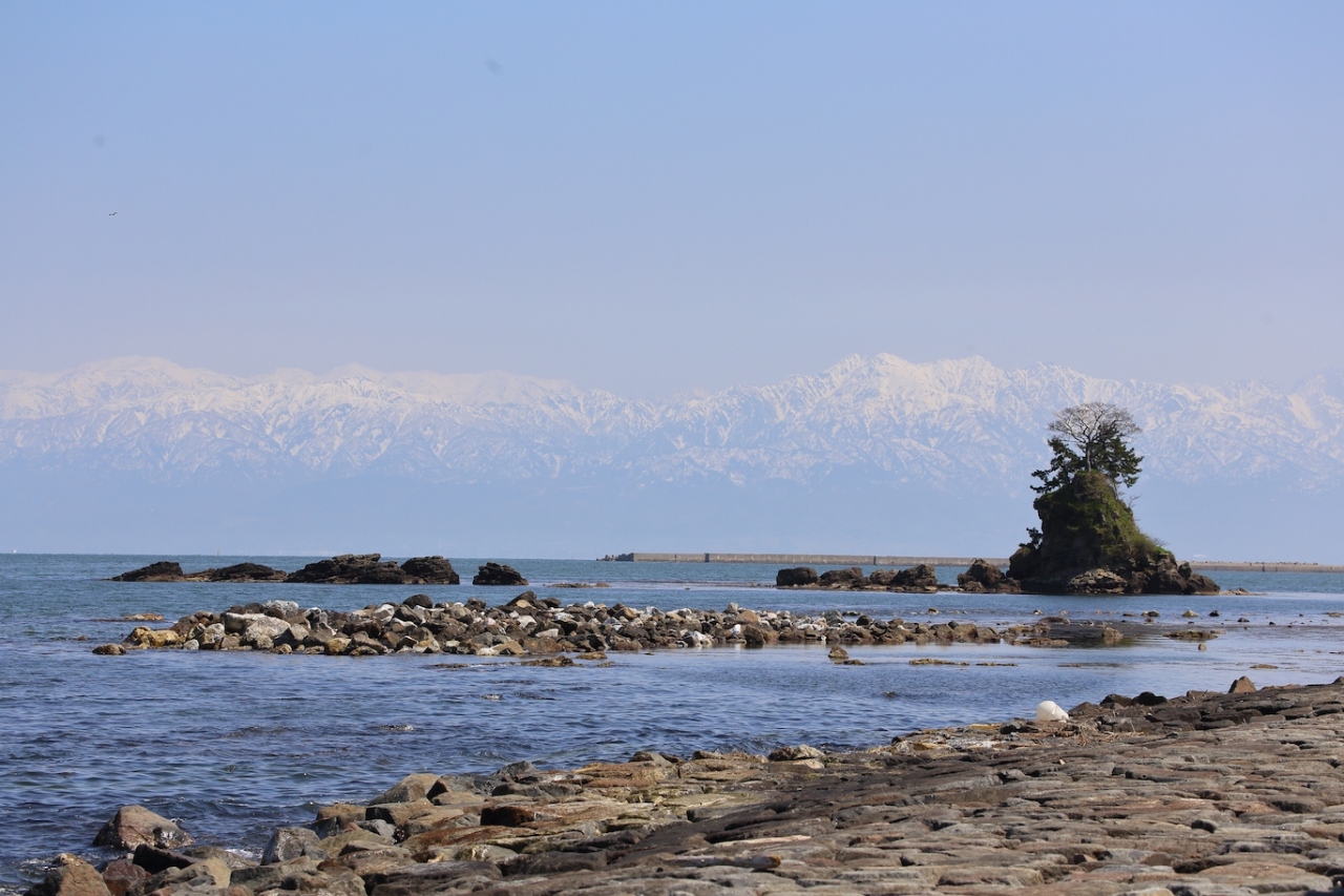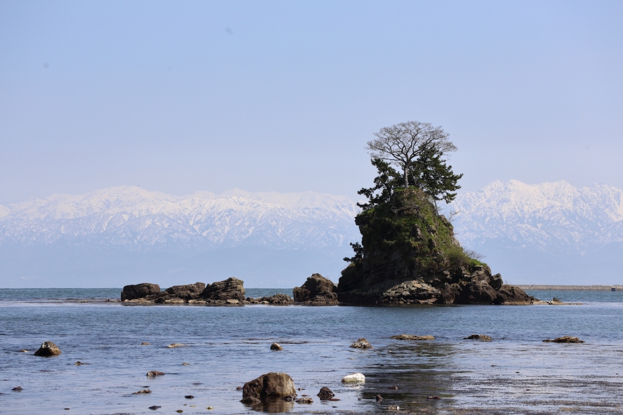 富山湾越しに立山連峰を見られる絶景スポットです。白い砂浜と一面の青い富山湾、そして富山湾には松を生やした女岩が浮かび、その後ろに白い雪を被った立山連峰が聳える、という日本的な絶景を見られる場所です。雨晴海岸という名前は知らなくても、雨晴海岸の景色を映像で見たことが有る人は多いのではないでしょうか。