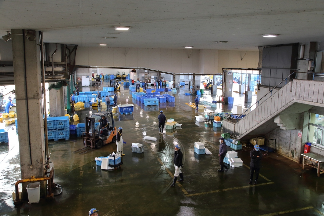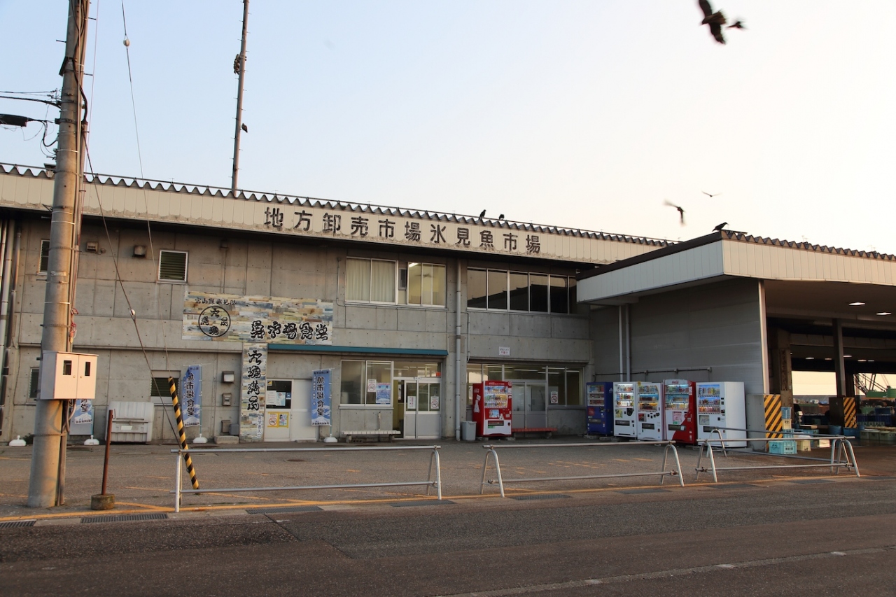 氷見市にある地方漁港です。氷見駅からは若干離れており、歩いて20分くらいの場所にあります。駅を出て、駅前の道をまっすぐ北上すれば見えてきます。外見はよくある地方の漁港で、特筆すべきものはありません。観光客はセリ場には入れないので、魚市場食堂の看板が出ている入口から階段を上って市場に入る格好になります。なお、直売所は併設されていないので、魚介を購入したい場合は北側にある『ひみ岸壁市場』や、その先にある『ひみ番屋街』に行かれると良いでしょう。