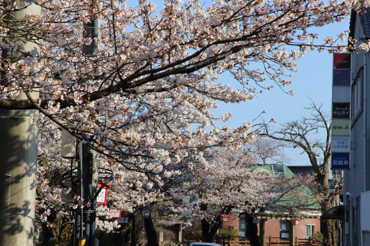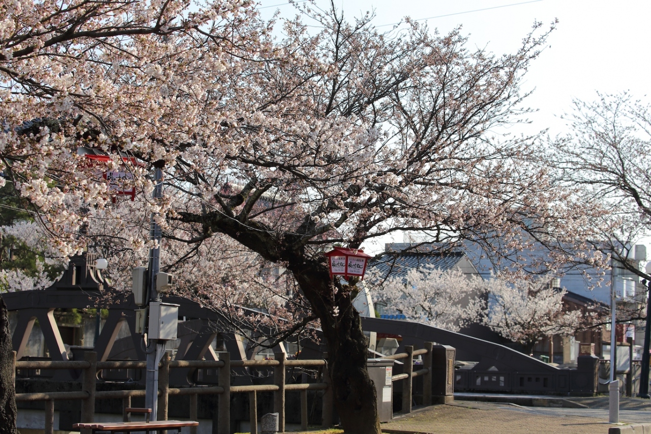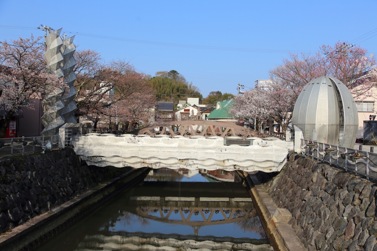 氷見市街を流れる湊川に沿って施設された遊歩道です。和平橋から朝日橋まで、川の両岸に桜が植えられており、私が訪問した3月末は五分咲きくらいでしたが、十分に綺麗な景色を楽しめました。満開の時期には美しい景観を楽しめると思います。また、途中には忍者ハットリくんのカラクリ時計が設置されており、朝9時から1時間おきにカラクリが動き、ハットリくんのキャラクターが現れるようです。