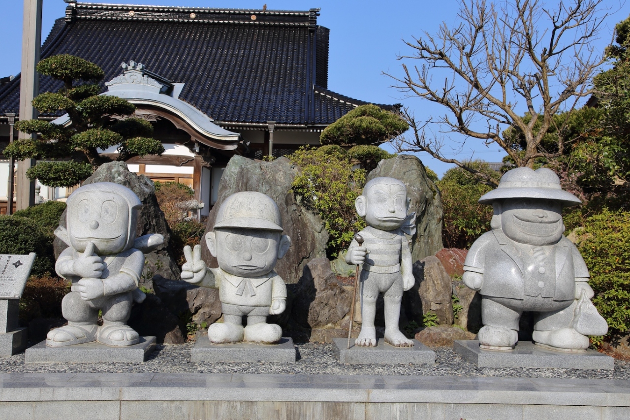 加賀前田家との縁もある古刹ですが、昭和になって火事で焼失しているそうで、現在の建築物は昭和や平成時代に再建されたものです。ですので、外見は何処にでもあるお寺さんで、目を引くものはありません。ただ、山門から中を覗くと、藤子不二雄A先生の代表的なキャラクターの石像が並んでいるのが見えます。内部もそれほど広くなく、キャラクターの石像がある以外は山門から本堂への参道が続いているだけです。また、本堂や庫裏には藤子不二夫A先生の作品や加賀前田家ゆかりの品もあるようですが、現在は拝観できません。