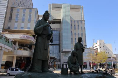 大伴家持は奈良時代に越中国司として富山に赴任しており、当時の越中の中心は高岡市伏木の辺りでした。その縁で、高岡市内には大伴家持の銅像が幾つかありますが、こちらのものは少女たちが花を摘む様子を歌に詠んだ、「もののふの八十娘子らが汲み乱ふ寺井の上の堅香子の花」をモチーフにしているようです。過去の偉人の銅像は日本各地にありますが、花まで銅像で再現している例は珍しいと思います。- 旅行時期