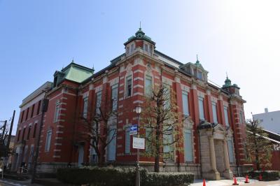 高岡の山町筋にある旧高岡共立銀行本店です。大正時代に建てられた、大正モダンの雰囲気が漂うオシャレな建物です。山町筋自体は伝統的建造物群保存地区に指定されている場所で、周りには黒い土蔵造りの建物が軒を連ねています。その中にポツンと赤いレンガ造りの建物があるので凄く目立ちますが、不思議と周囲の景観に溶け込んでおり、全く違和感を感じさせません。