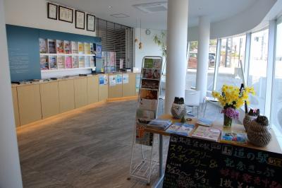 雨晴海岸の目の前に建っている道の駅です。2018年に建てられたばかりなので、建物はかなり綺麗でした。丁度目の前が義経岩で、踏切を渡れば雨晴海岸に直ぐに出られます。JR雨晴駅からも歩いて5分掛からないと思うので、交通の便も良いです。結構狭い敷地に建てられているので、内部はそれほど広くありません。3階建てですが、1階は観光案内所、2階はカフェと土産物売り場と展望デッキ、3階も展望デッキ、という構成です。