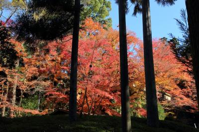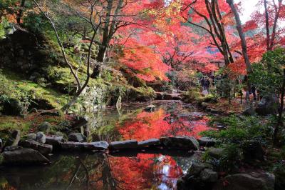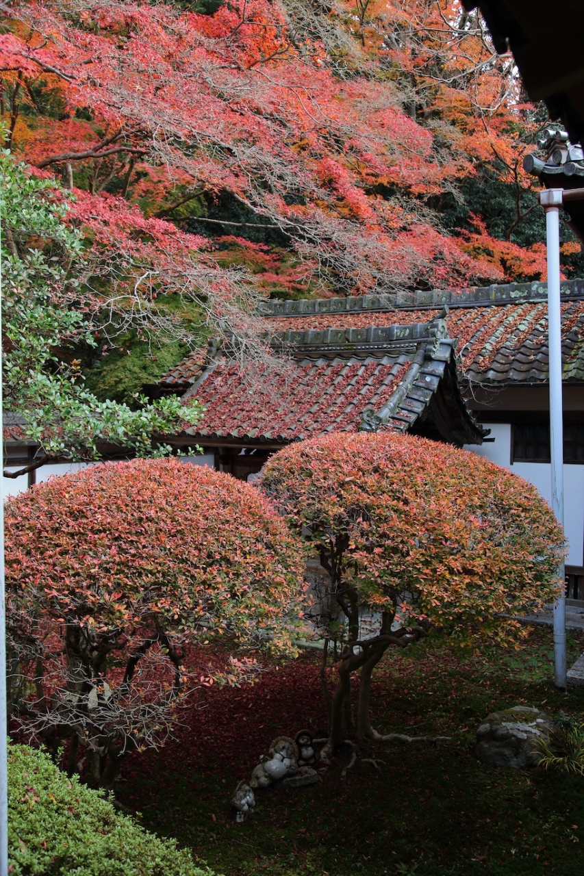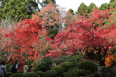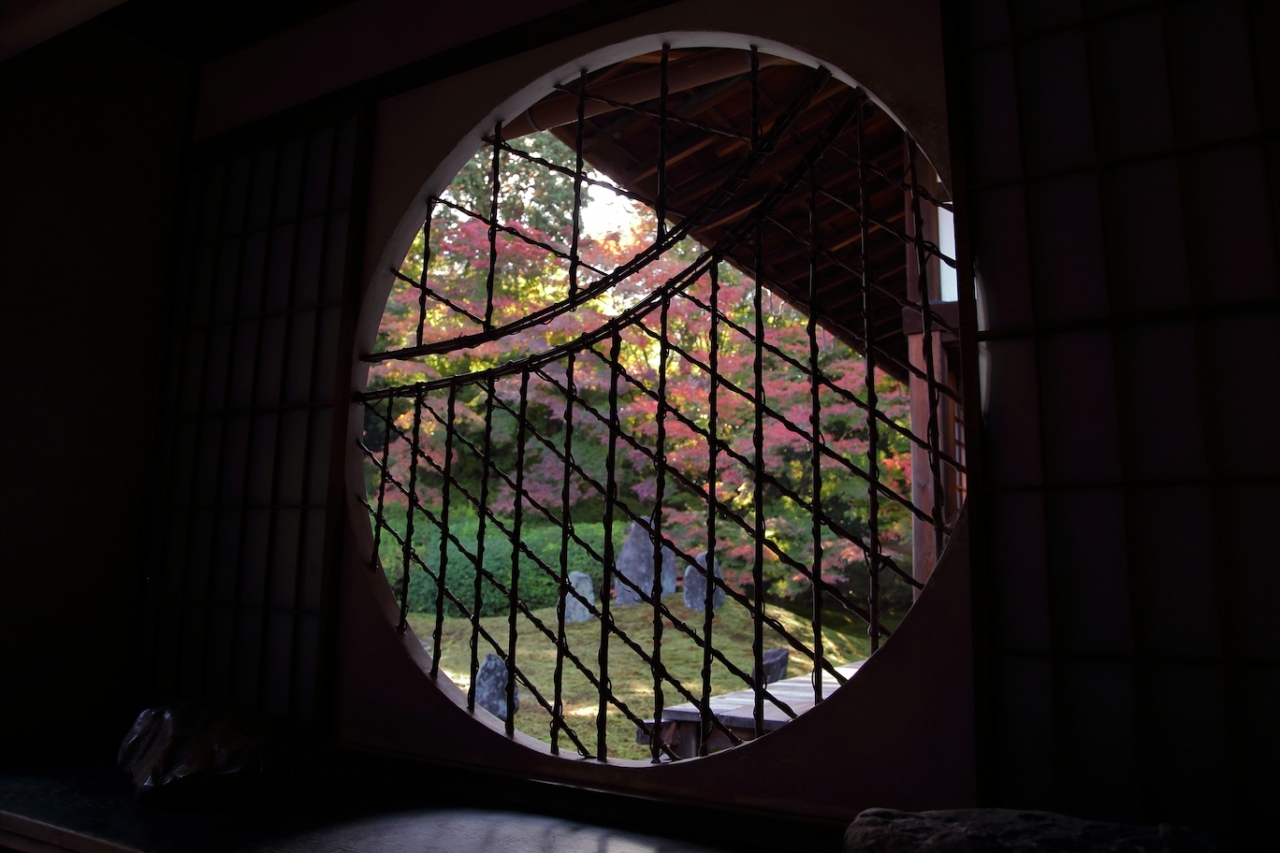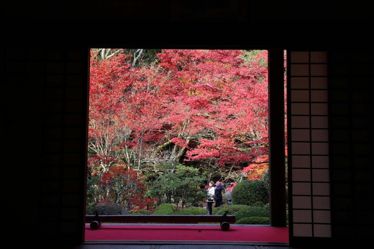私が訪問した際は見事な赤と終わりかけのくすんだ赤、緑が混じりあい、一面の紅葉というわけにはいきませんでした。ただ、拝観客も少なかったため、静かな雰囲気で紅葉を楽しむことができました。こちらでは丸窓から覗く紅葉が良く紹介されていますが、実際に見ても美しく、大変満足行く景色を楽しめました。