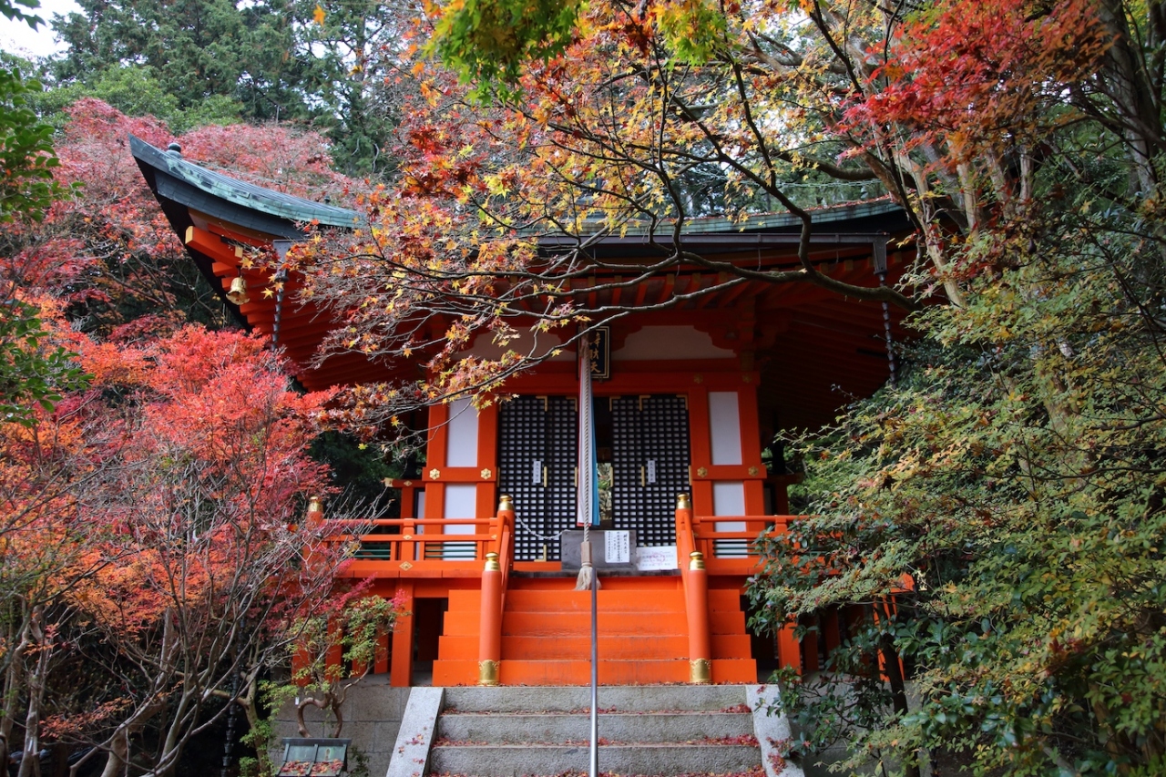 ただ、勅使門の紅葉を差し引いても紅葉の名所であることに違いは無く、仁王門に続く急な石段を彩る紅葉や、本堂裏から見える紅葉に囲まれた高台弁財天、晩翠園など、たくさんの見どころがあります。普通に紅葉の名所としてお勧めできる場所です。- 旅行時期