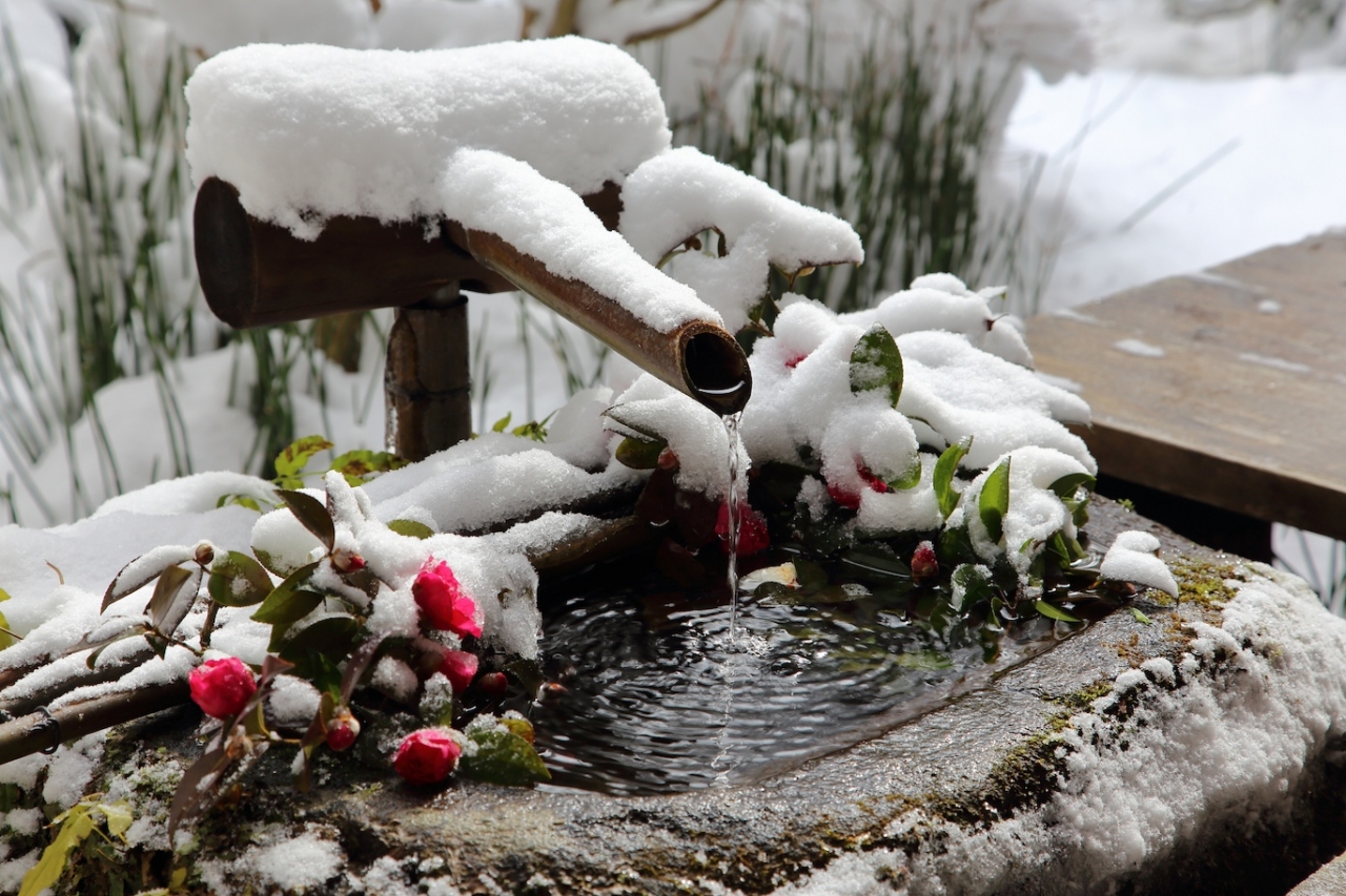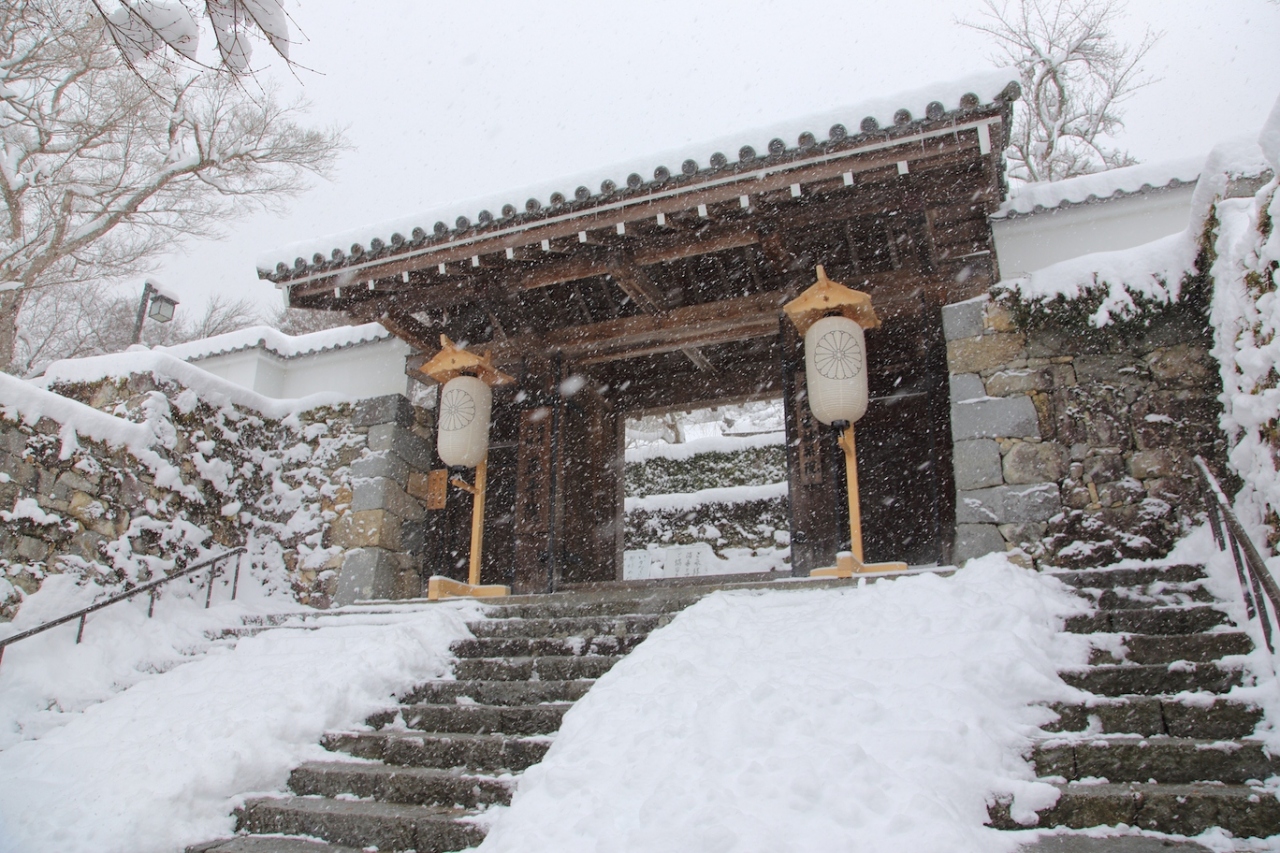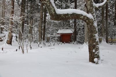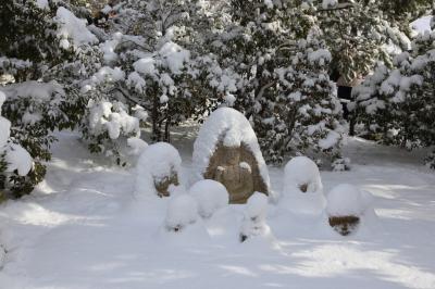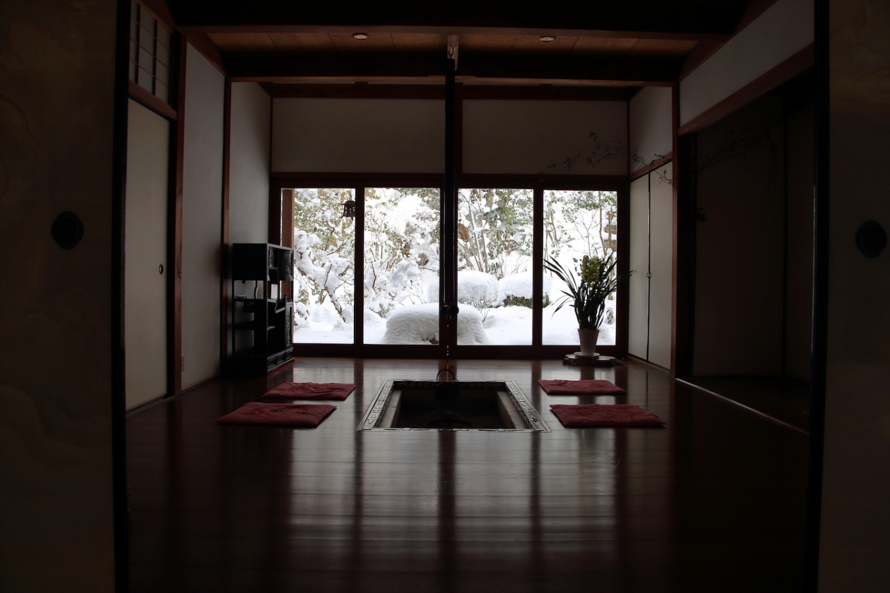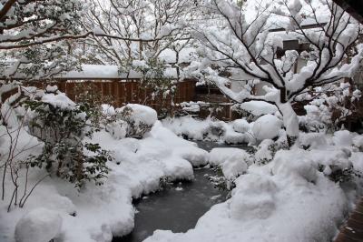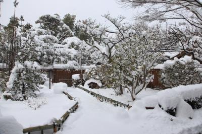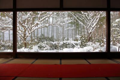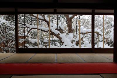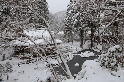 雪の名所と紹介されていたこともあって訪ねてみましたが、訪問して正解でした。広い畳敷きの部屋に緋毛氈が敷かれ、盤桓園の雪景色とのコントラストが何とも言えずに美しかったです。開けっ放しなので雪が結構舞い込むのですが、景色に気を取られて全く気になりませんでした。客殿脇の鶴亀庭園は大量の雪もあって庭園としての形は判り辛かったですが、雪を楽しむという意味では良かったです。また、客殿の囲炉裏部屋越しに見る庭の景色は趣深いものでした。