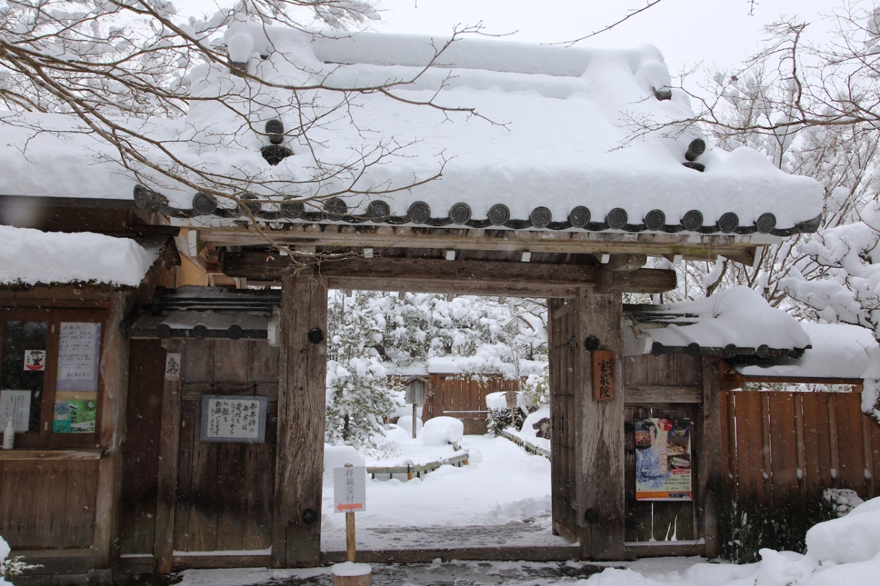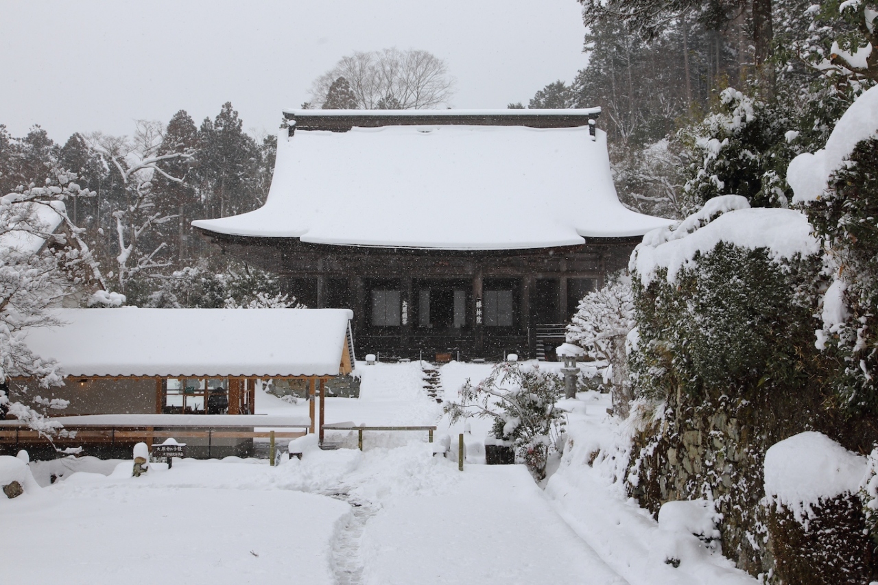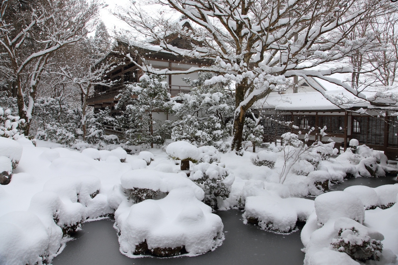 京都・大原の里にある天台宗の門跡寺院です。住所は京都市内ですが、かなり山深いのでバスか車で行くのが前提です。なお、バスの一日券だと大原までは行けないので、バスで行かれる場合はバス・地下鉄一日券を購入されることをお勧めします。桜の名所としても紅葉の名所としても有名な寺院ですが、三千院というと何となく雪のイメージがあったので、大雪が降った際に訪問しました。