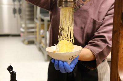こちらでは是非さつまいものモンブランを頼んでみてください。少々お高いですが、味や見た目のインパクトを含めてわざわざ注文する価値があると思います。あと、注文すると実際に作っているところを見られるのもポイントが高いです。器に焼き芋のスライスを敷き、スポンジとアイスクリームを乗せ、そこに芋のペーストをこれでもか、というくらい乗せてくれます。仕上げに黒ゴマと黒蜜が掛けられ、さつまいものチップスを刺してくれるのでさつまいもを堪能できます。味は文句なく美味しかったです。なお、お土産用のスイートポテトも買って帰りましたが、そちらも美味しかったですよ。- 旅行時期