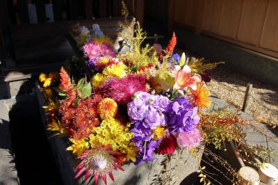 私が訪問したのは秋の特別拝観になりますが、小さな東門を潜ると見事な花手水と美しい紅葉に彩られた庭園が出迎えてくれました。庭園の手水鉢にも花が飾られているほか、色とりどりの和傘や動物のお面が飾られており、紅葉とのコントラストが美しく、拝観客が楽しめるように工夫されていました。傘は本堂内にも飾られており、芸術的な雰囲気を醸し出していました。本堂から見る紅葉も素晴らしかったです。なお、境内には小さなお地蔵さまもいて、ほっこりとした気分になれました。