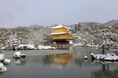 雪を被った金閣寺は本当に素晴らしかったです。曇り空だったのと、鏡湖池が凍ってしまっていて逆さ金閣が見られなかったのは残念でしたが、それらを差し引いてもわざわざ行って良かった、と言える景色を見られました。雪の金閣を狙ってカメラマンが大勢集まるのが良く判りました。桜や紅葉であれば毎年見る機会がありますが、大雪だけはいつ降るか判らないので、本当に運が良かったです。- 旅行時期