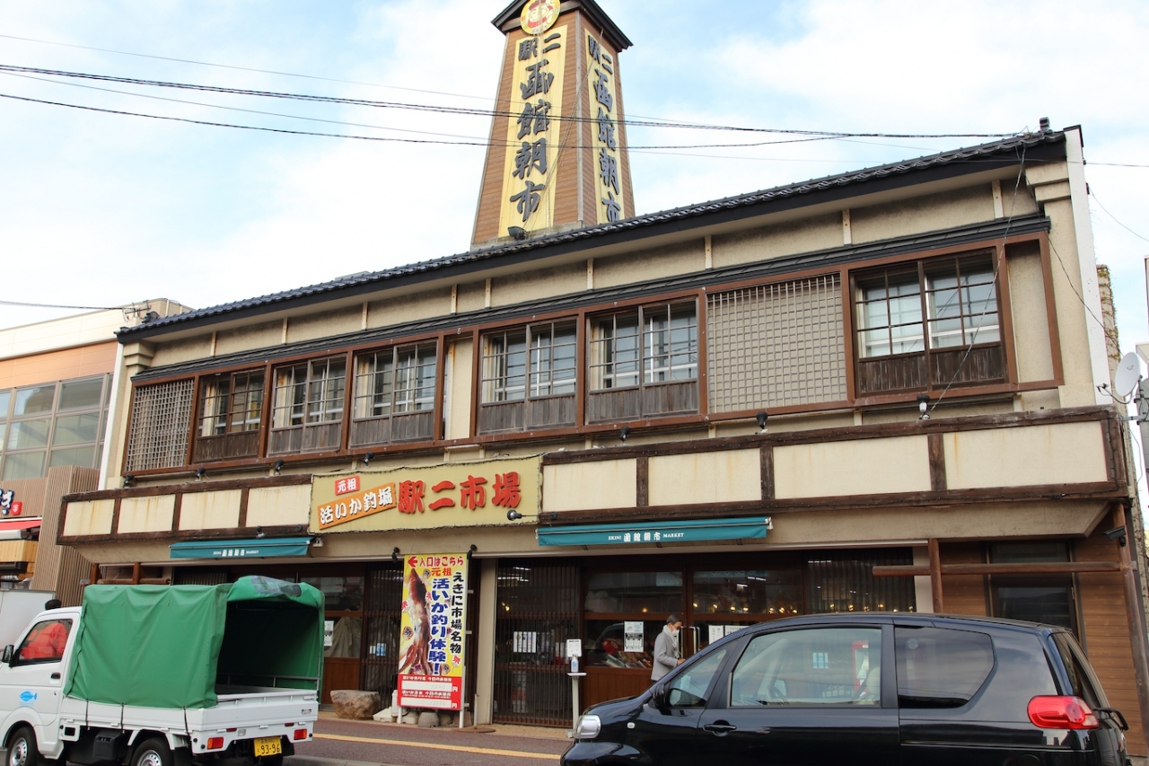 函館で一番有名な市場でしょう。函館駅を出て元町方面(南)を向けば駐車場越しに直ぐに目に入ります。函館には自由市場や中島廉売もありますが、アクセス的にはこちらが一番だと思います。