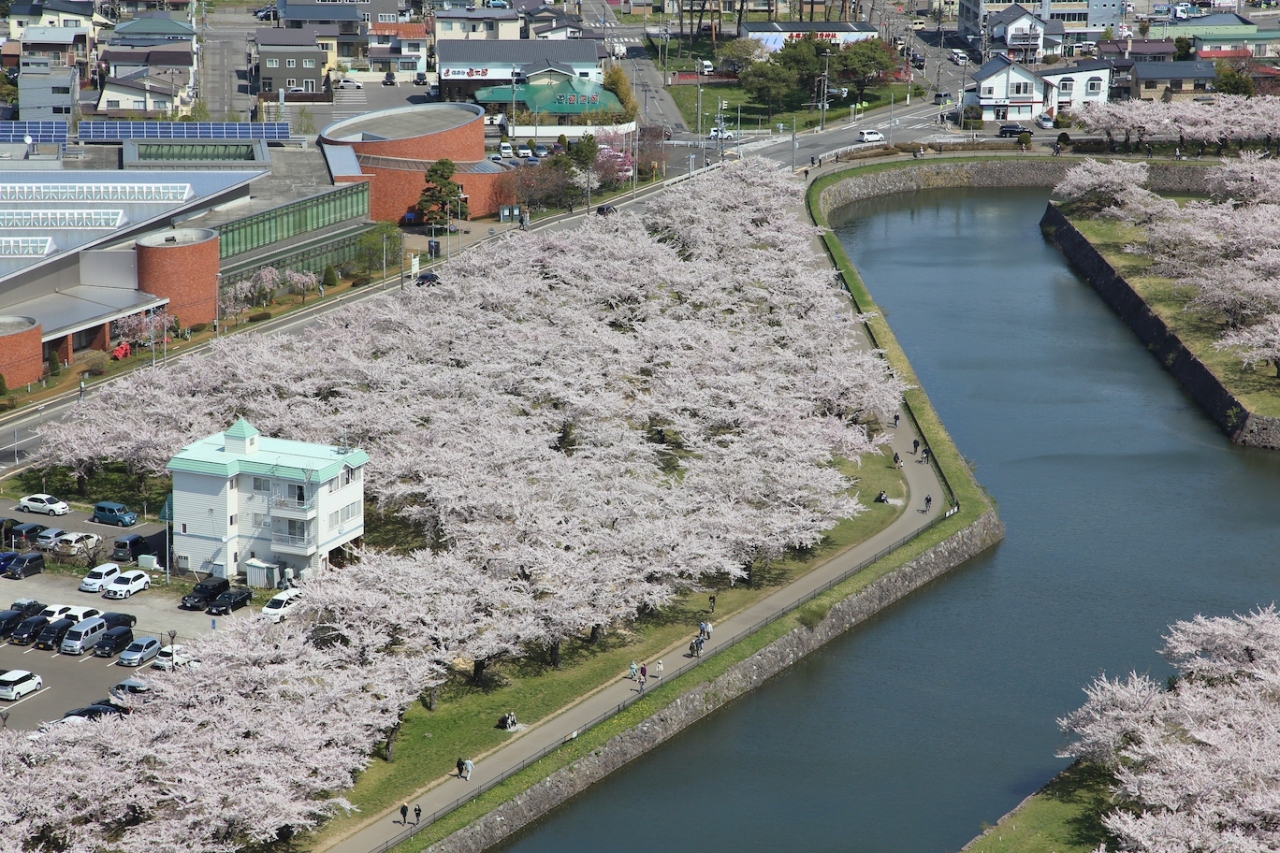 五稜郭の直ぐ南側に建つ展望塔です。五稜郭公園全体を一望できますが、残念ながらパンフレットなどで良く見る五稜郭を真上から見下ろした景色は見られません。こちらから見られるのは斜め上から見た景色になります。十分に素晴らしい景色なのですが、空撮のような景色を期待していくと裏切られることになるのでご注意ください。