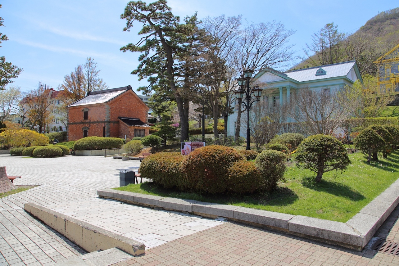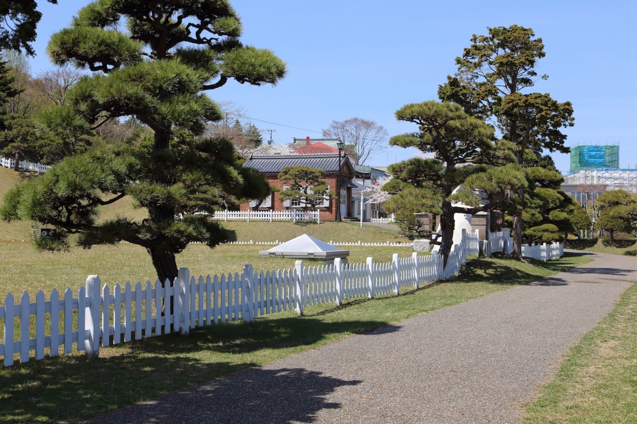 基坂の終点にある公園です。室町時代から藩政期にかけては蝦夷地(北海道)の中心、明治期から戦後にいたるまでは函館の中心だった場所です。現在も旧北海道庁函館支庁舎や旧開拓使函館支庁書籍庫が移築されています。