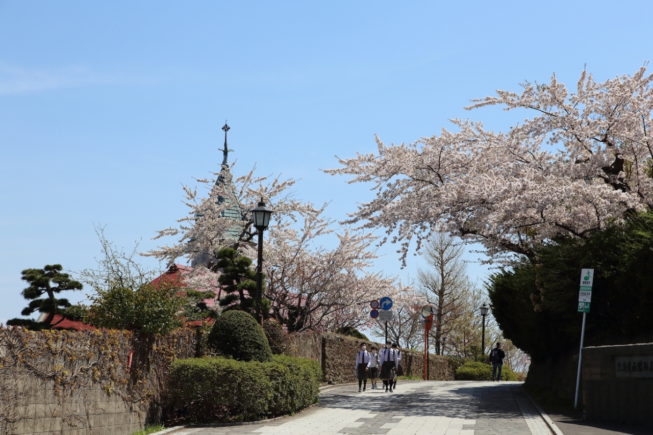函館市電の柏木町で降り、函館駅方面にちょっと戻ったところにある通りです。函館の住宅街にある短い通りですが道の両脇に桜が植えられていて、桜の時期には桜のトンネルを満喫できる場所です。観光地では無いような気もしますが、函館の桜というと必ず出てくる場所ですし、桜自体も見応えがあるので足を伸ばして損はありません。