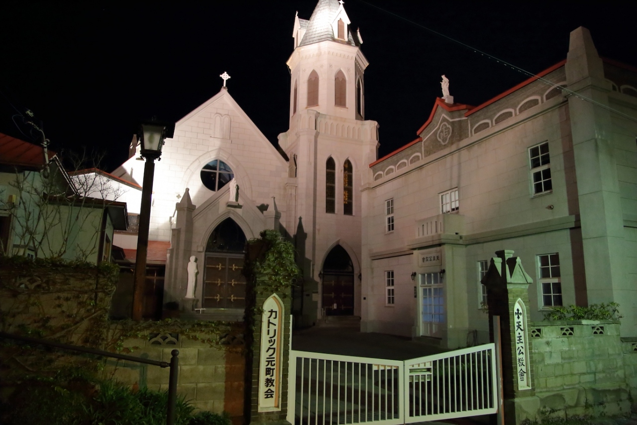 歴史は古く、横浜、長崎と同様に幕末期に建てられたものです。残念ながら初期の建築は火事で失われており、現在の聖堂は大正期に建築されたものです。内装はゴシック建築らしく、青いヴォールト天井とステンドグラスのシンプルなものです。ただ、壁には火事の見舞いとしてローマ法王ベネディクト15世から送られたイタリア製の壁像が飾られており、見応えがあります。祭壇の彫刻も素晴らしく一見の価値がありますので、外見だけでなく聖堂内の見学もお勧めします。なお、聖堂内の写真撮影は禁止されていますのでご注意ください。- 旅行時期
