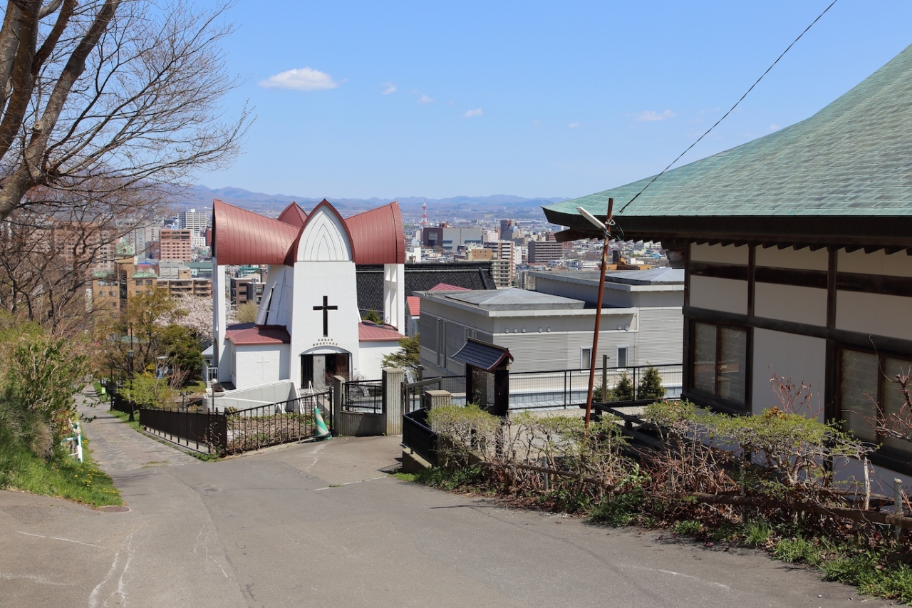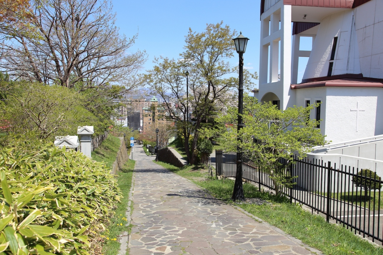 カトリック元町教会の南側に位置し、ハリストス正教会と聖ヨハネ教会に挟まれているので、教会群を一望できます。坂の終りに妙福寺さんがあり、そちらの境内から教会と噴火湾の素晴らしい景色をみることができます。坂道は急ですが上るとご褒美が待っていますから、頑張って上ってみてください。- 旅行時期