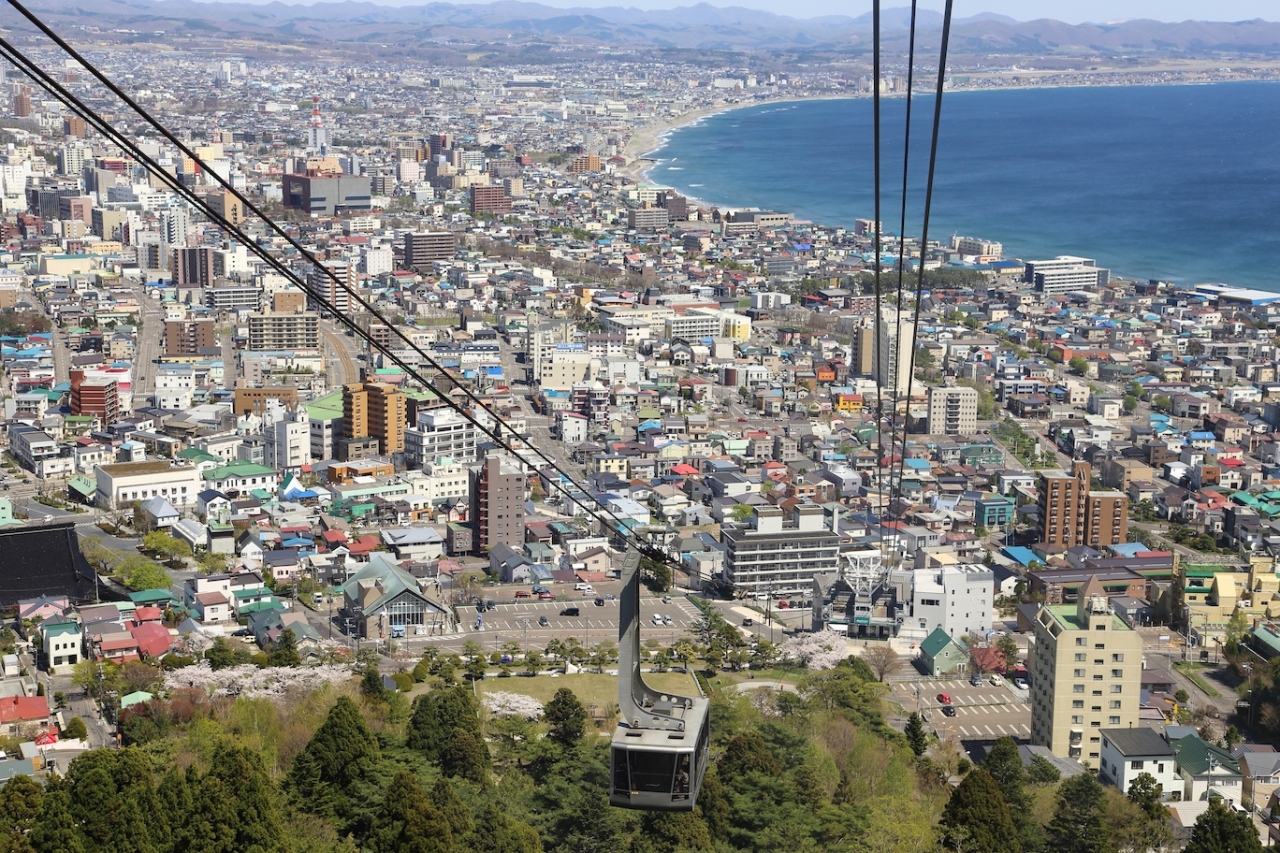 函館山山頂に繋がっているロープウェイです。函館山には自家用車やバスでも行けますが、山道を走っていくのでそれほど展望は良くありません。こちらのロープウェイは窓が大きく取られているので、展望を楽しみながら山頂まで上がることが出来ます。