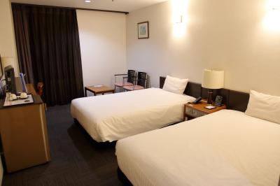 結構大きなホテルで、一人旅でしたがツインルームを使えました。アメニティは一通り揃っており、部屋には冷蔵庫もありました。ユニットバスの設備が若干古い感じでしたが、特に問題無く使えました。ロビー脇にはウェルカムドリンクも用意されていますし、奥には漫画の棚があって自由に読むことも出来ます。