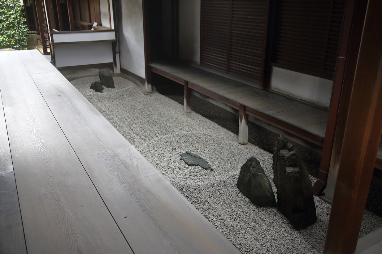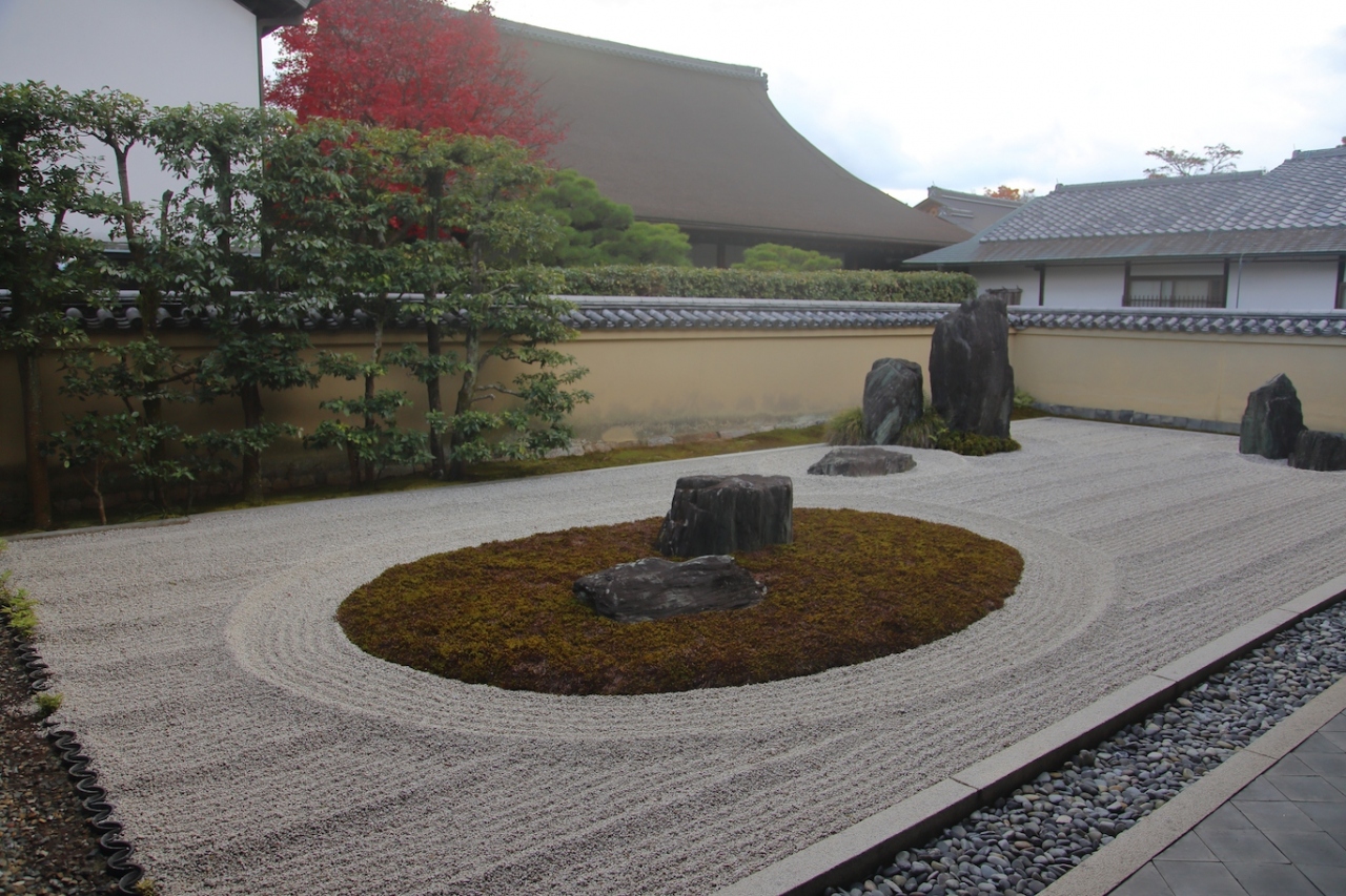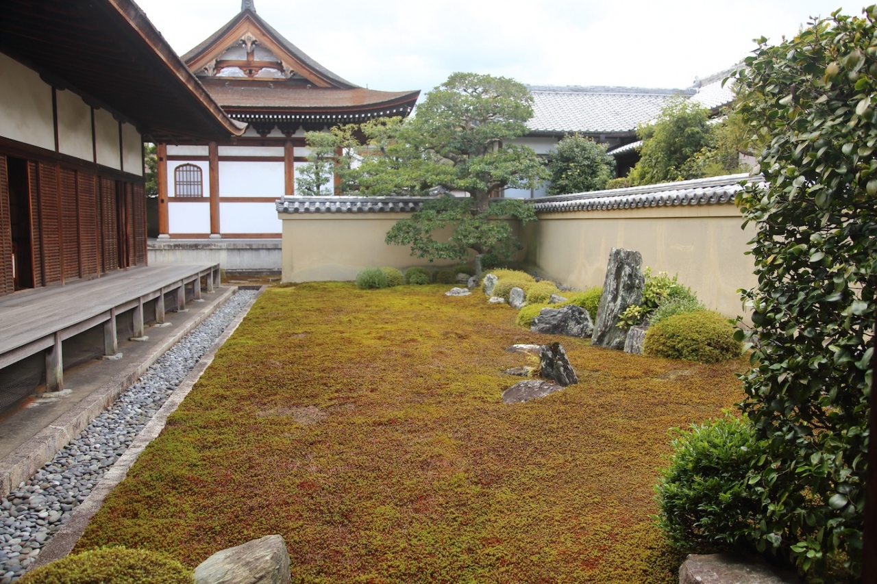 こちらの見どころは院内の石庭ですが、一番はやはり日本最少の庭園と言われる「東滴壺」でしょう。庫裏と方丈に挟まれたところにあり、受付から入ると直ぐにあります。ただ、廊下に囲まれていて見えづらく、書院前の「滹沱底」や方丈前の「一枝坦」が目に入ってくるので、気を付けてないと通り過ぎてしまうでしょう。それくらい小さな庭園です。後、石庭ではなく苔と石を組み合わせた「龍吟庭」という庭があります。