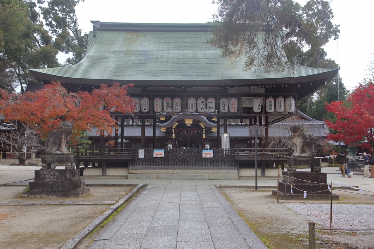 大徳寺の北側にある神社です。今宮神社前バス停が最寄ですが、大徳寺最寄である船岡山バス停や建勲神社前バス停からも歩いて行けます。紅葉の時期でしたら大徳寺前バス停で降りて、大徳寺の境内を突っ切って行っても良いかも知れません。幾つかの塔頭は前庭を公開してますので、前庭の紅葉が楽しめますよ。