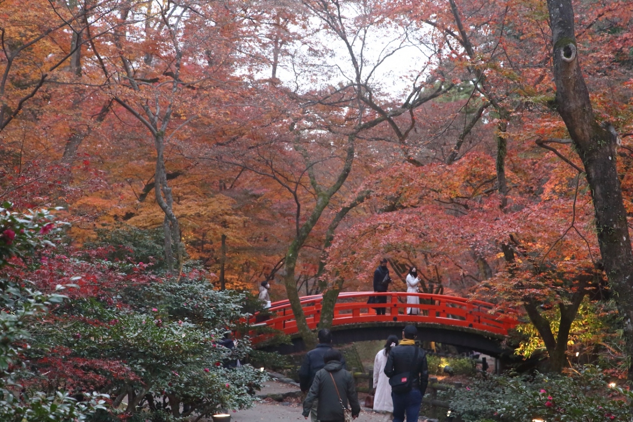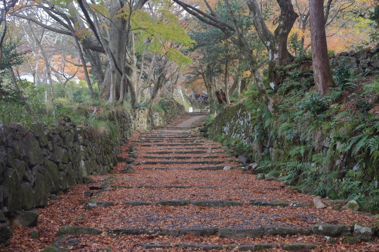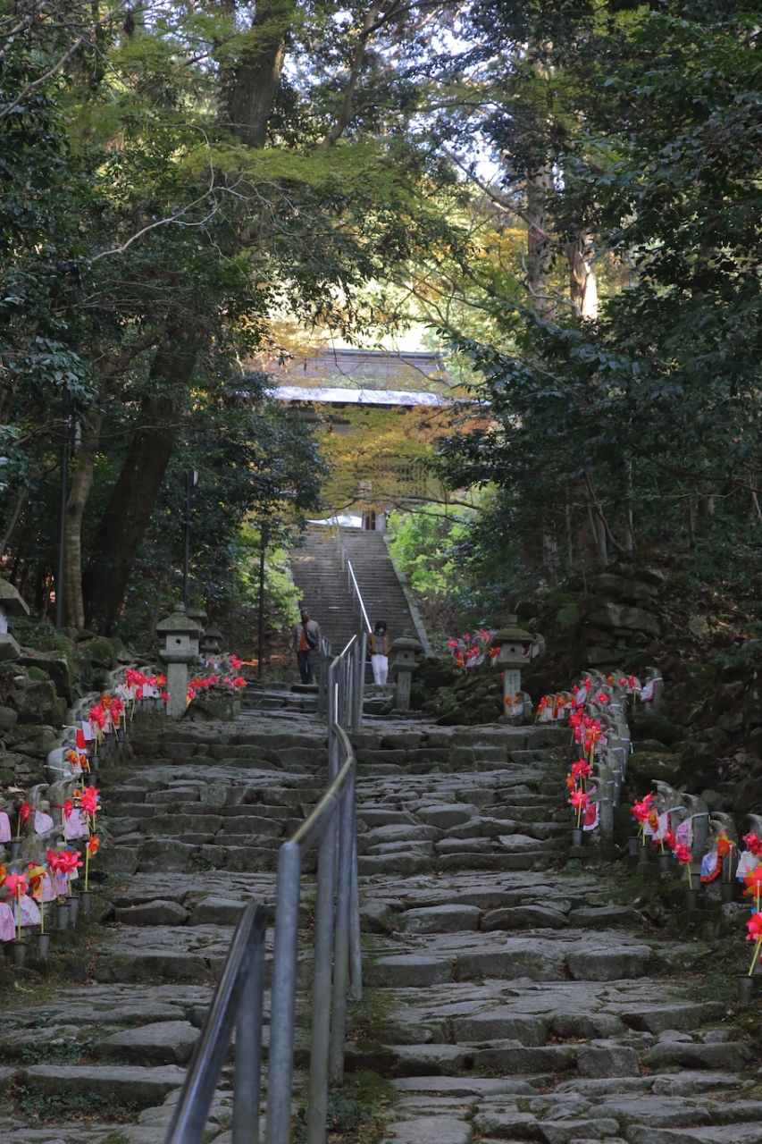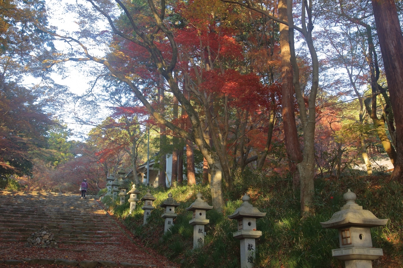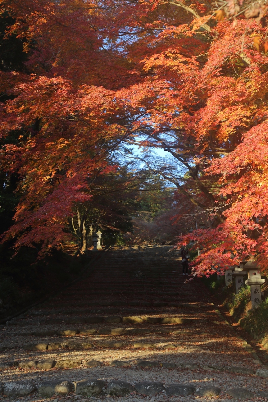 紅葉の名所として有名ですが、やはり一番の見どころは表参道の石段と紅葉の組み合わせでしょう。残念ながら私が行ったときには紅葉はほぼ終わっており、見ることはできませんでしたが。ただ、紅葉以外にも見所は多く、喜見院の池泉回遊式庭園や遠望台からの眺め、仁王門や本堂なども一見の価値があります。あと、参拝の際には駐車場目の前の本坊からではなく、一度赤門まで下り、そこから参拝することをお勧めします。結界の中に入ったような、独特の雰囲気を味わえますよ。