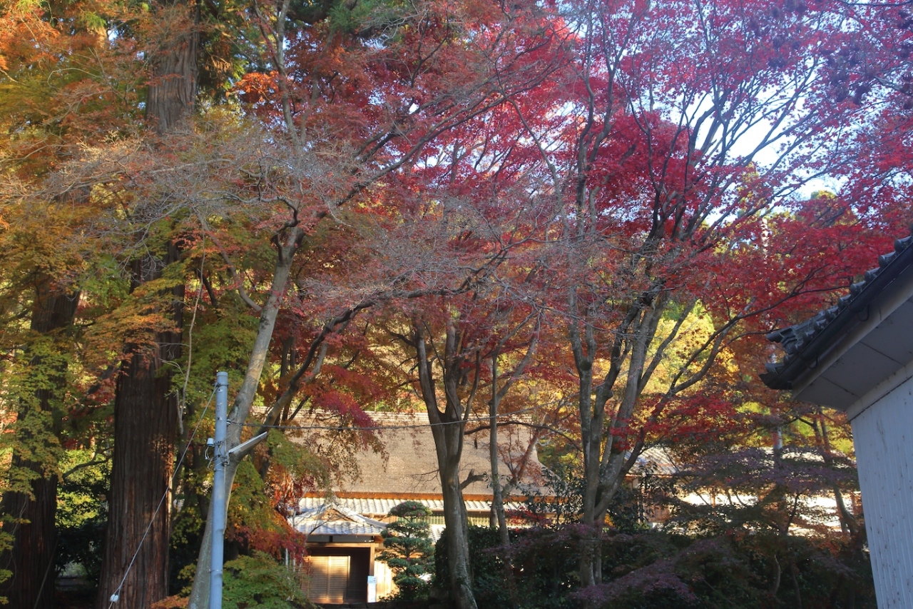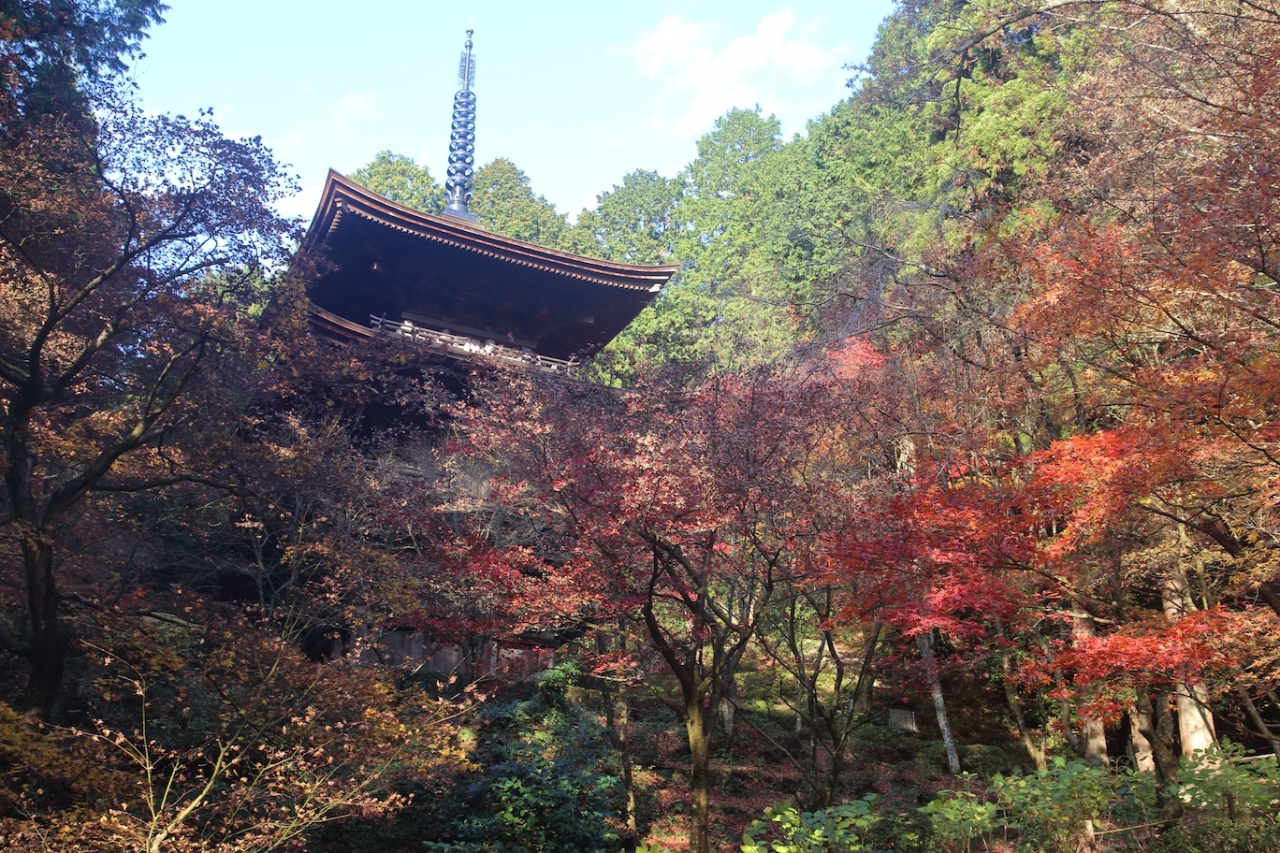紅葉の名所で本堂脇にある三重塔の紅葉は見事ですが、行くまでが大変です。駐車場前の黒門から、庭園のある白門まではなだらかな登り坂でそれほど大変では無いのですが、白門から二天門、本堂に続く道はかなりキツいです。一応、石で舗装はされていますが結構でこぼこで、サンダルだとかなり大変だと思います。白門前に自由に使える杖が置いてあるのは伊達ではありません。庭園も見応えがあるので、体力に自信が無い場合は庭園までで引き返すのもありだと思います。ただ、上りきったところにある本堂や三重塔は見応えがあるので、苦労する価値はあると思います。特に、私が行ったときには秘仏の特別開帳もされていたので、ありがたく拝んできました。