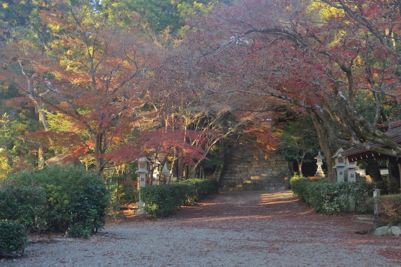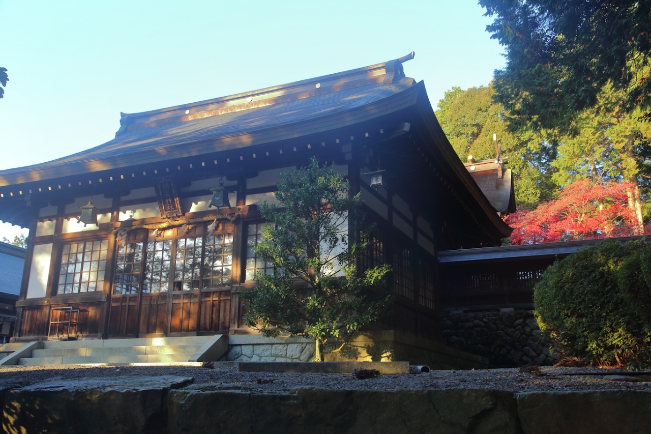 あまり有名な神社ではありませんが、滋賀の紅葉名所の1つです。創建は古く、飛鳥時代に敏満寺の鎮守社として建立されたようです。敏満寺は戦国の頃に焼打ちに遭い廃寺となっていますが、こちらの境内に跡が残っています。また、拝観期間は短いですが、社務所庭園は国の名勝に指定されています。