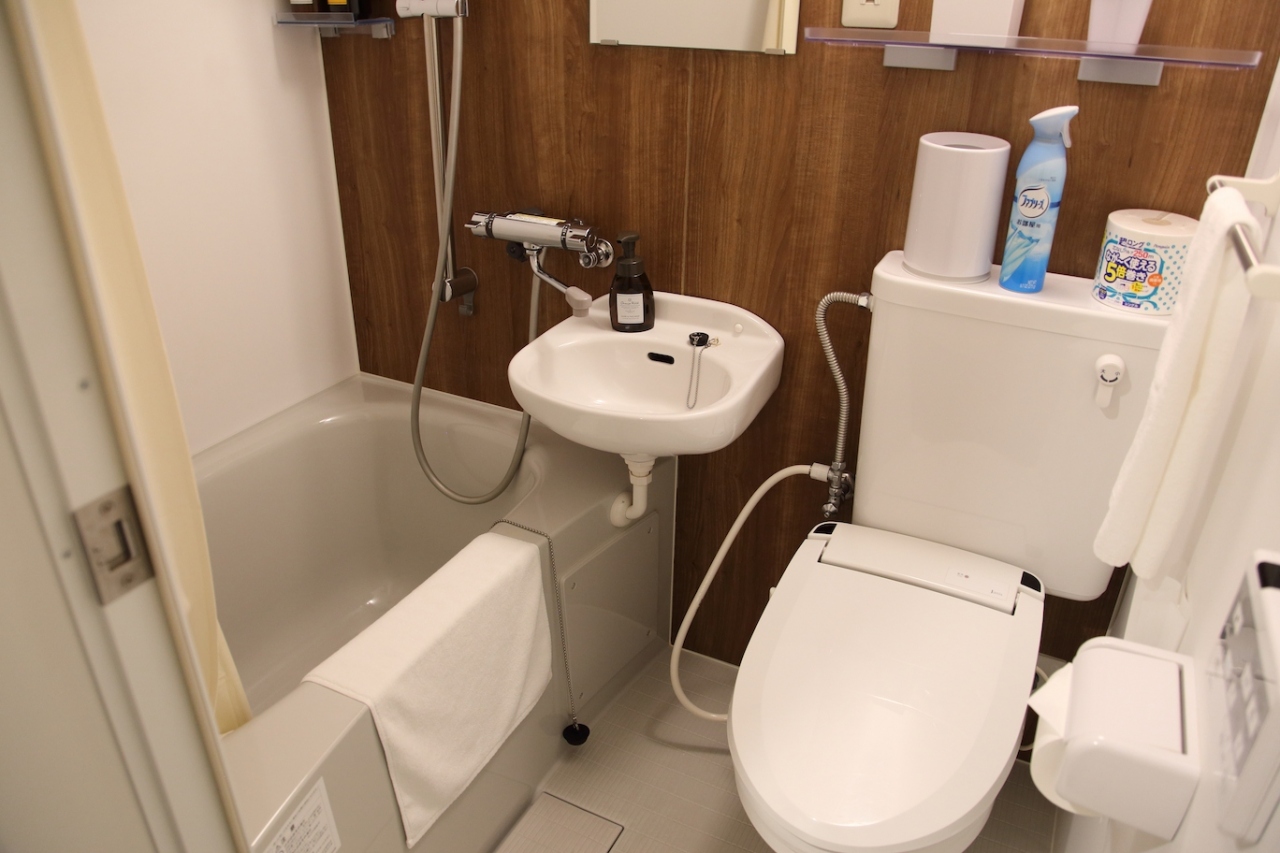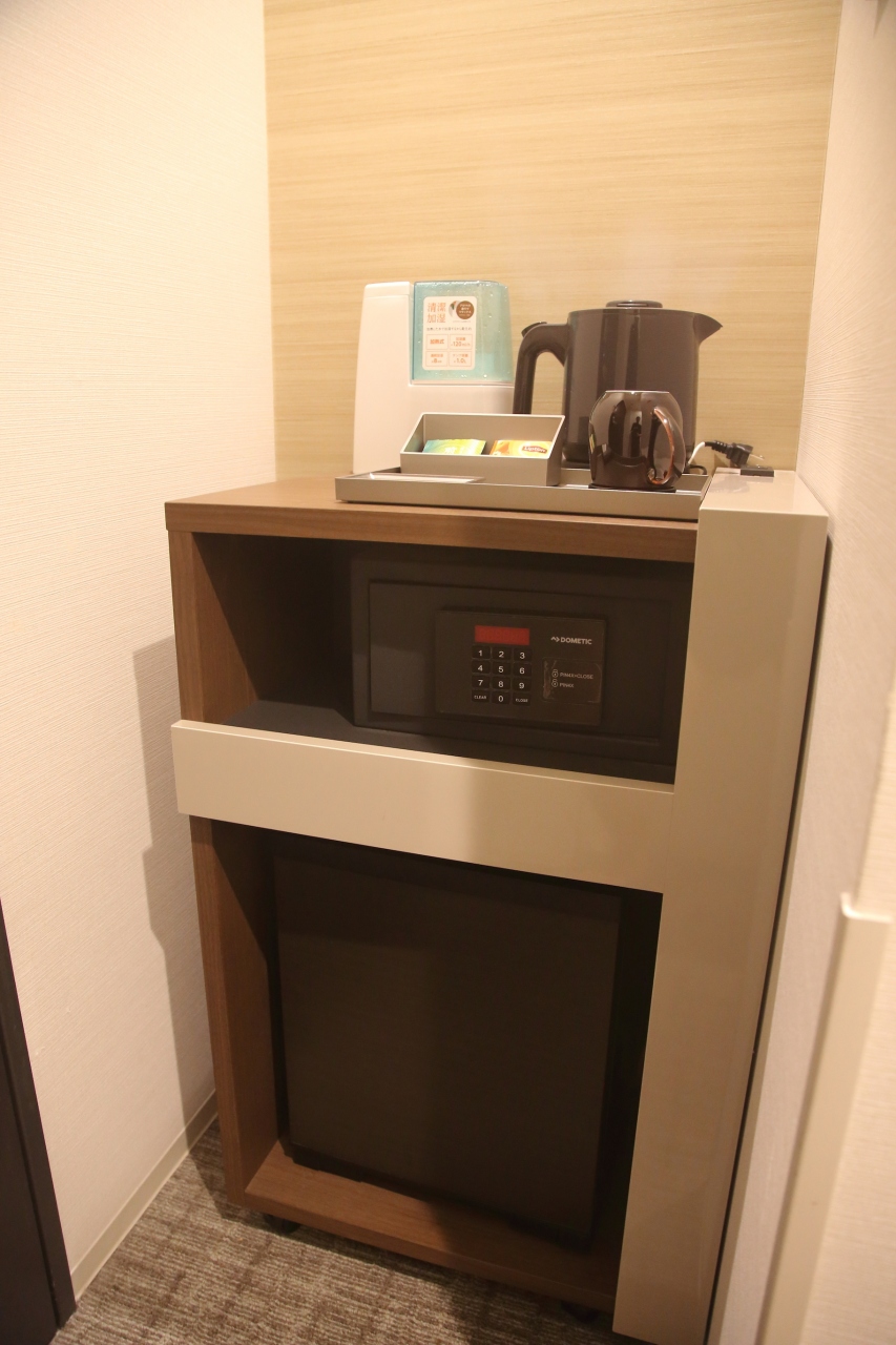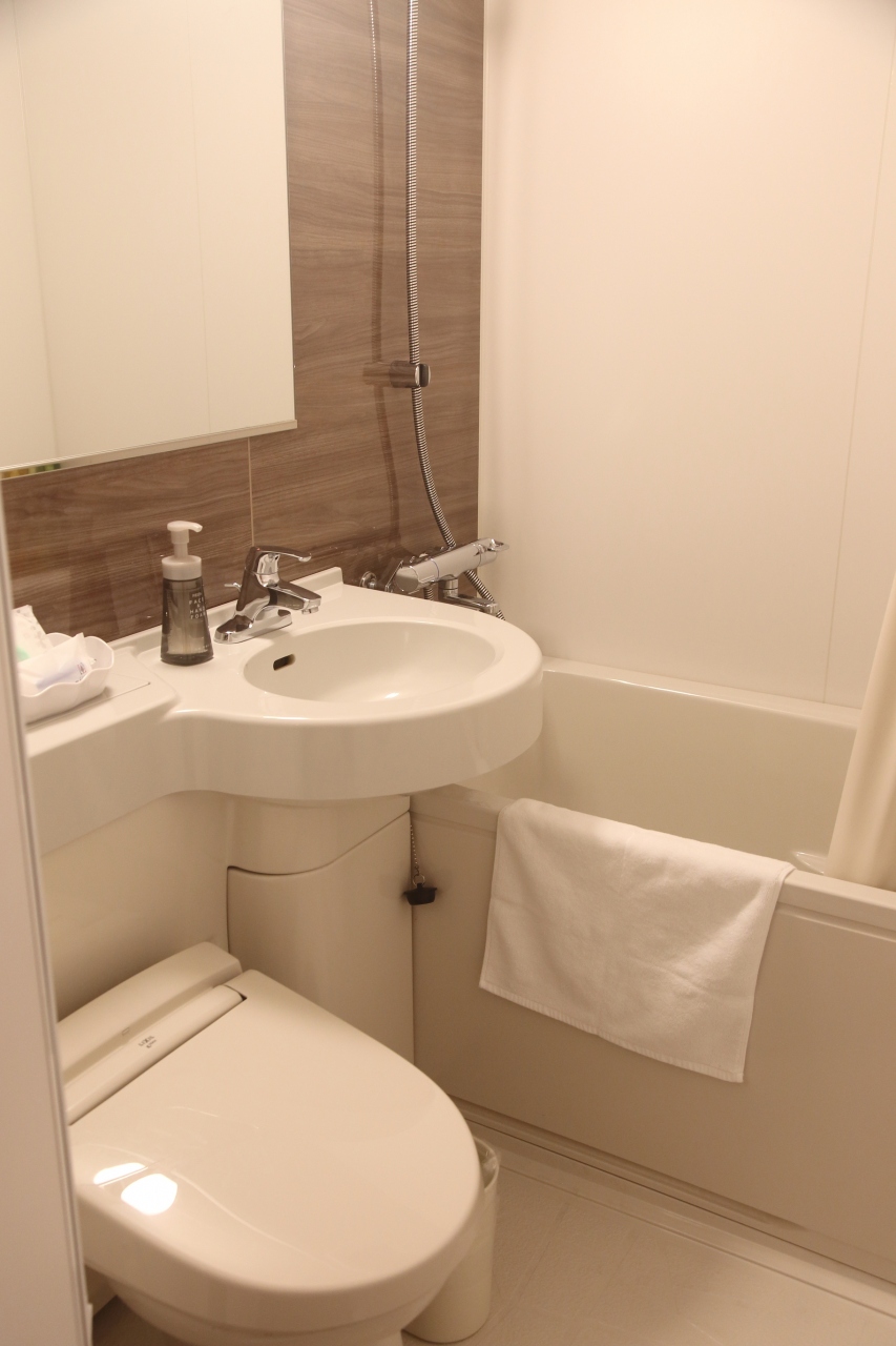 シングルルームに泊まりましたが室内はそこそこ広いです。ただ、机は無く、ベッドと丸テーブルと椅子、それに金庫や冷蔵庫が取り付けられたキャビネットがありました。丸テーブルもノートPCを広げたら一杯になる程度の大きさなので、部屋に籠って仕事をしよう、という方には向かないかも知れません。アメニティは一般的なもので、困ることは無いと思います。