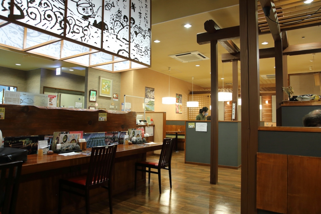 ホテルサンリバー四万十と同じ敷地にあるレストランです。うなぎや青のり、鰹やうつぼなど高知の特産料理も多く取り揃えています。基本的にはファミリーレストランなので食事が主体ですが、お酒も出すので一品料理で一杯、ということも出来ます。実際、私が訪ねた時にもそのような方がおられました。店内はテーブル席とカウンターがあり、一人客でも大丈夫です。また、お隣のホテルサンリバー四万十に宿泊している場合、ホテルのカードキーを提示すると現金払いに限り1割引きになります。