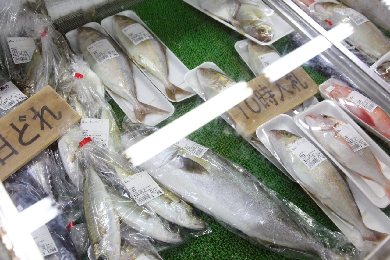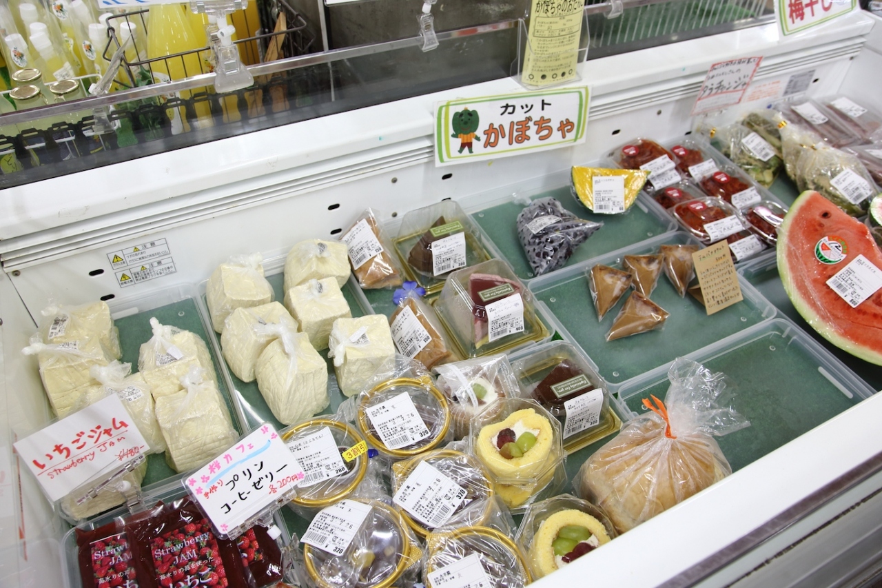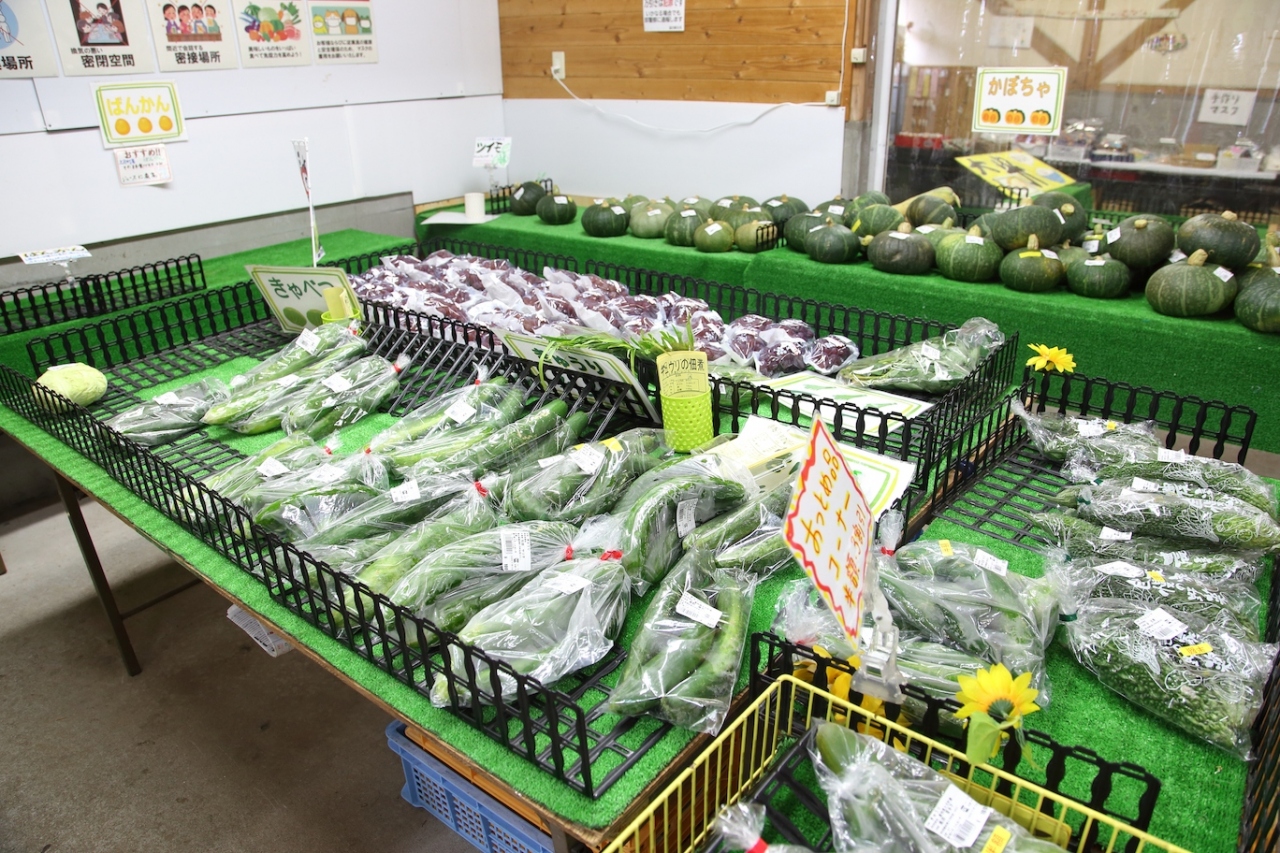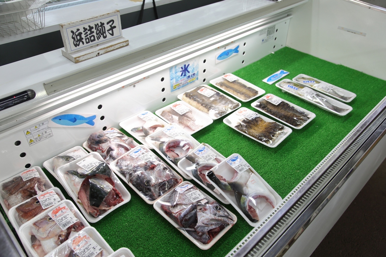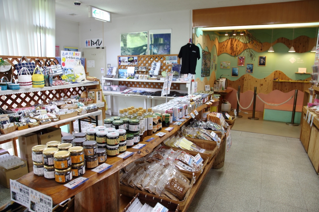 建物は土産物売り場と産直市場に分かれていて、土産物売り場は大月町の特産品、産直市場は地物の生鮮食品を扱っています。驚いたのが産直市場で、野菜は勿論のこと、朝獲れの魚が沢山並び、冷凍の肉類なども豊富でスーパーと変わらないような品揃えでした。地元の菓子舗の和菓子やスイーツも並んでいて、近くでキャンプ等をするなら、買い出し先として非常に便利だと思います。わんぱくランドには大きな滑り台などもあり、遊びに来ても良いかも知れません。