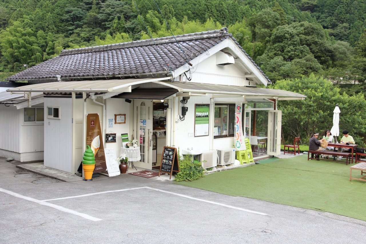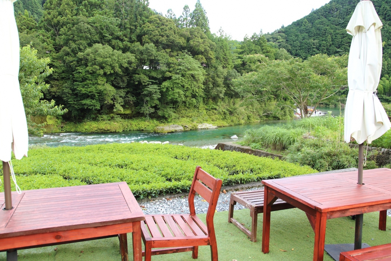 カフェは土居川に面していて、表のテーブルからは綺麗な川の流れを見ることが出来ます。こちらはお茶を使ったスイーツが自慢なので、綺麗な川を観ながら美味しいスイーツを堪能できます。