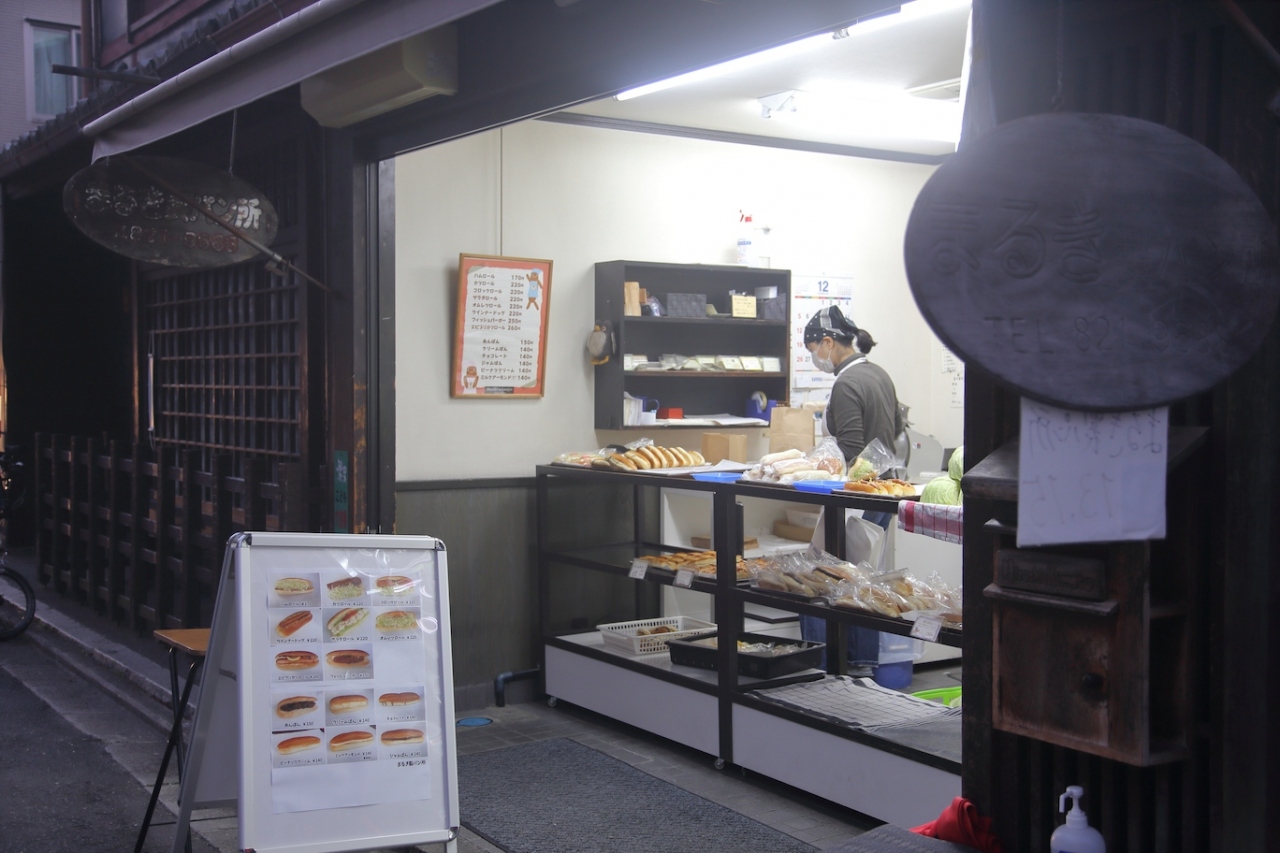 京都市内にある老舗のパン屋さんです。昭和22年創業だそうなので、70年以上経ってますね。店舗は老舗に相応しく町屋を改装したもので、すごく味があります。販売方法もパンがガラスのショーケースに並んでいて、店員さんに欲しいパンを伝えると取ってくれるシステムです。この辺も昔っぽくて良い感じです。