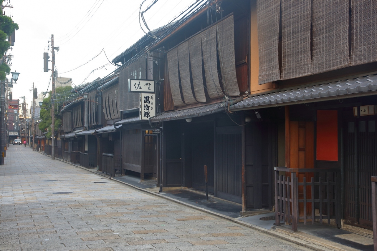 花見小路と並び、祇園の落ちついた街並みを残す通りです。四条通の南側にある花見小路とは逆に、四条通の北側にあります。祇園四条駅の9番出口を出て路地を曲がり、真っ直ぐ進んだところにあるファミリーマートと川を挟んで北側の通りになります。