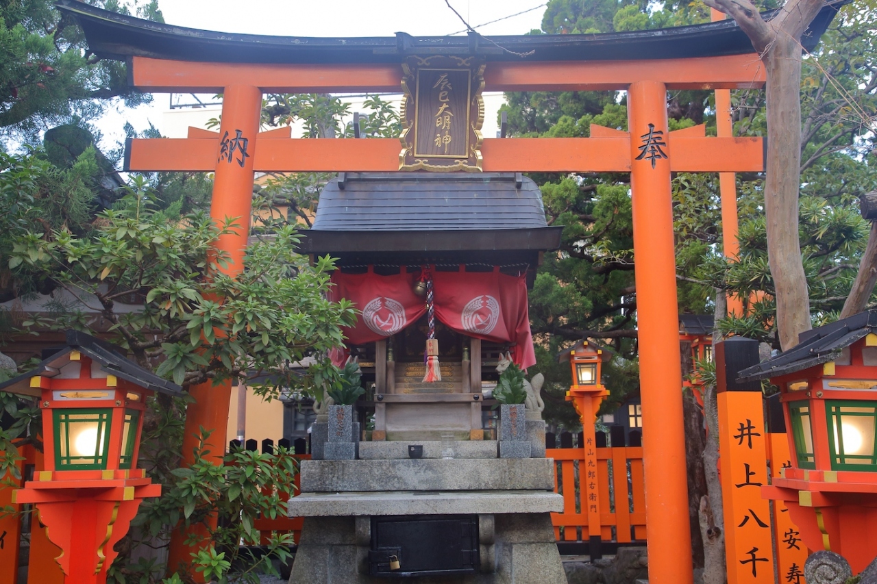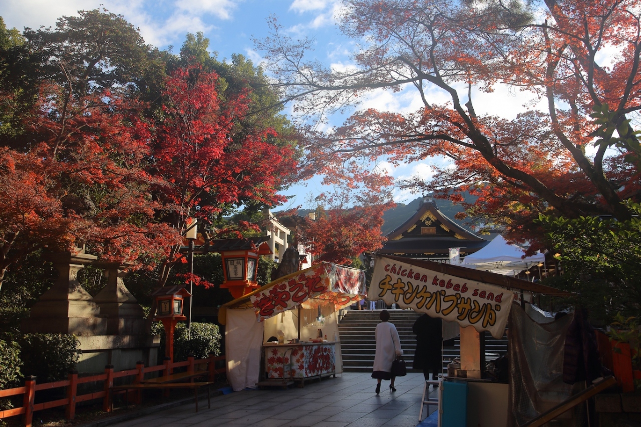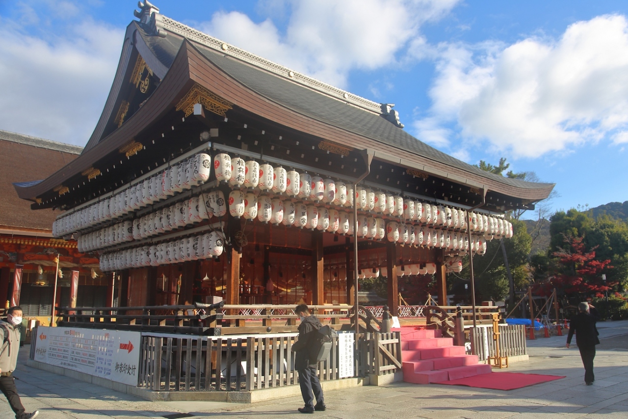 京都の四条通りの行き止まりにある神社です。祇園四条駅を降りて東方向に商店街を抜ければ真正面です。元々祇園社というのが八坂神社の通称で、花街は八坂神社の境内にあったために祇園という言葉が定着したようです。