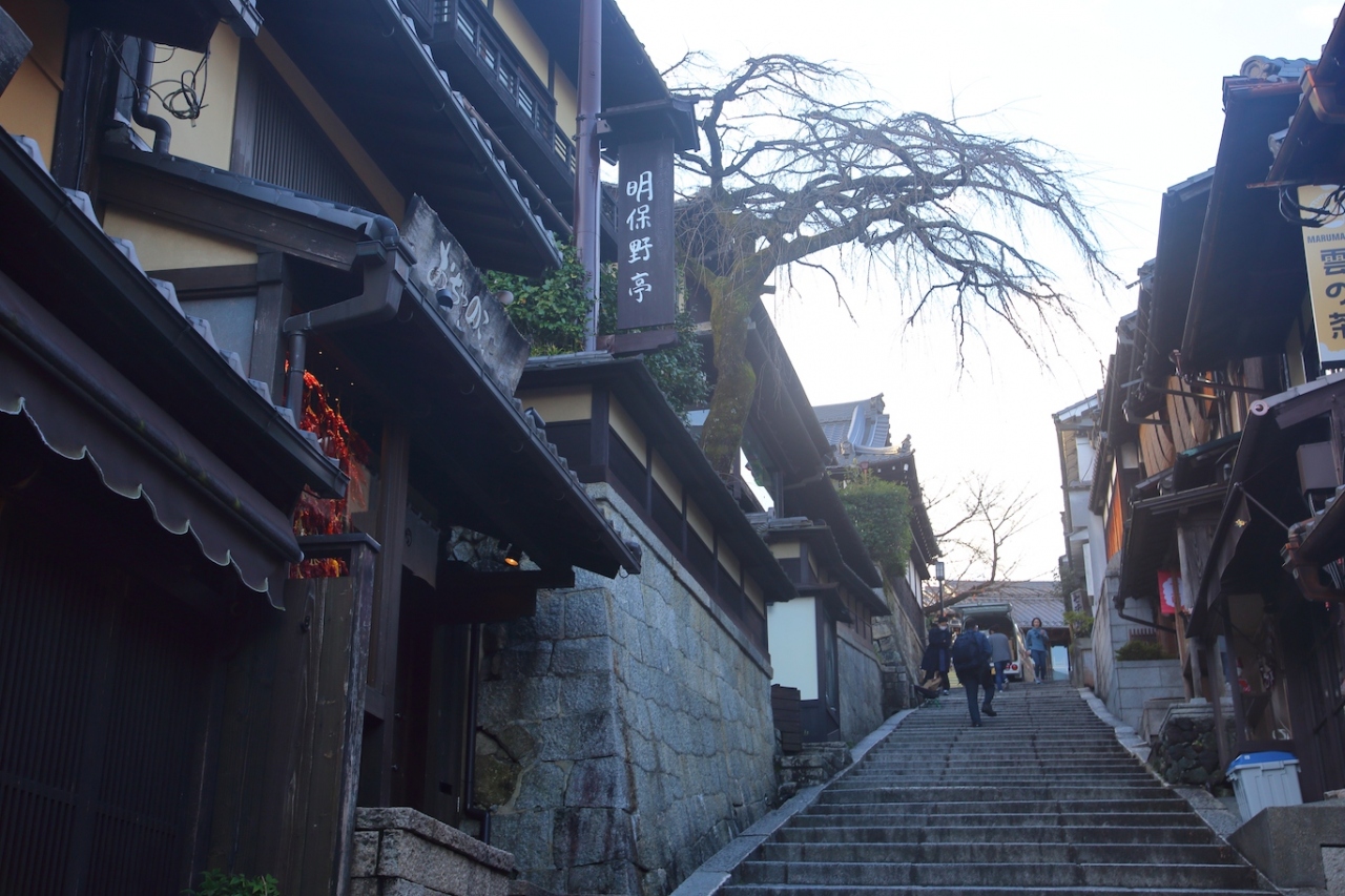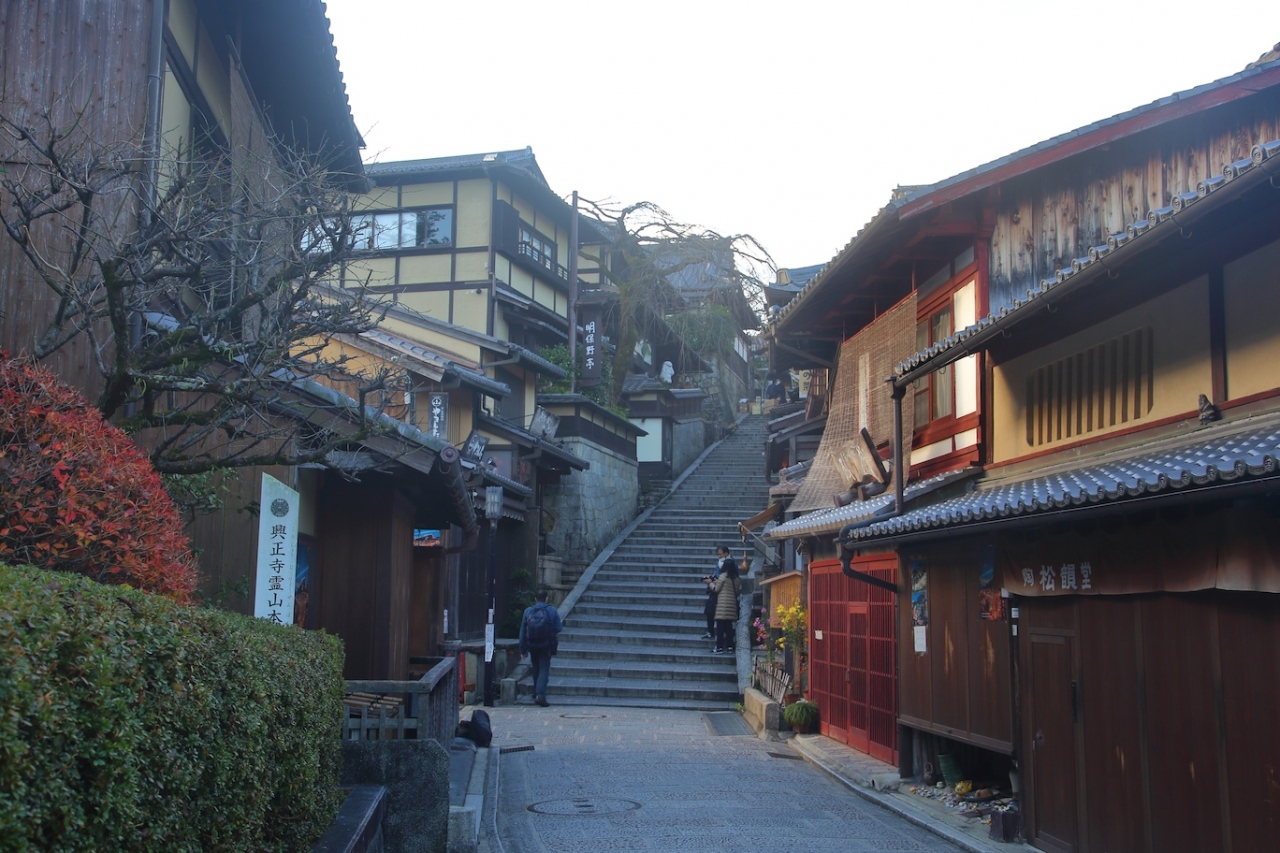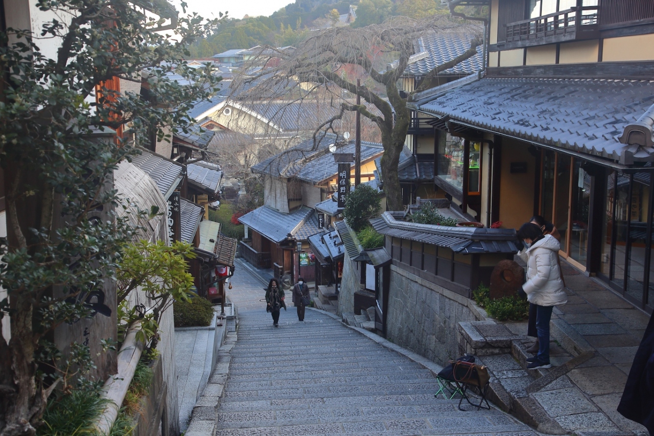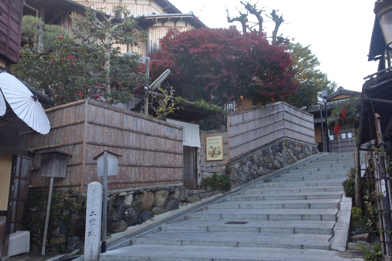 こちらには高台寺方面からも清水寺方面からも行けますが、個人的には高台寺方面から一念坂、二寧坂からを経由して訪問されることをお勧めします。高台寺からだと殆ど登り坂ですが、風情のある街並みの散策と土産物屋巡りを楽しめますし、老舗を含めて飲食店も結構あるので食事も楽しめます。