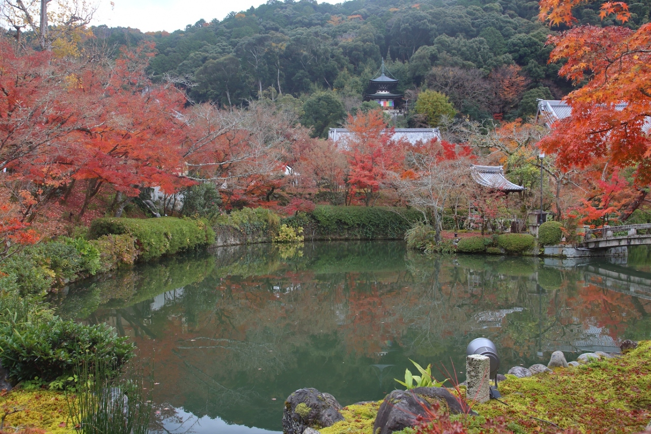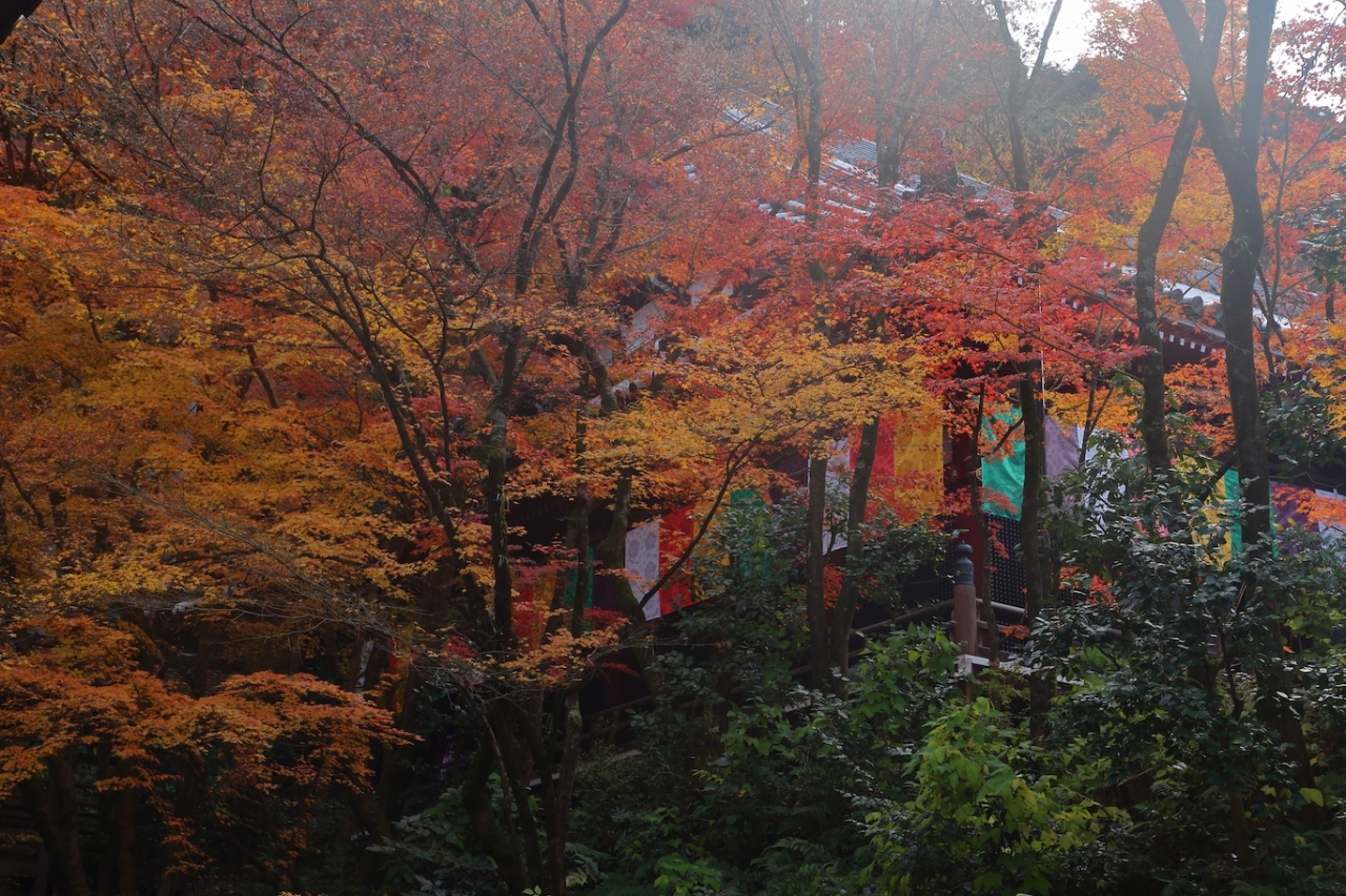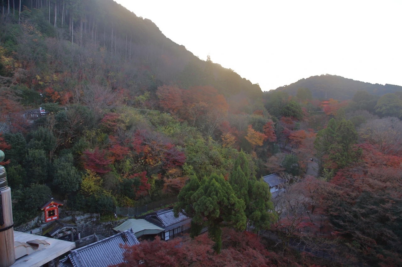 四季を通じて素晴らしい景色を見られますが、特に紅葉の時期は素晴らしいです。本堂や子安塔の周り、音羽の滝へ下る階段、音羽の滝から舞台の下を通る道、西門や三重塔の下にある放生池の周りなど、見応えのある場所が沢山あります。今回は12月の訪問だったので残念ながら紅葉は終りかけでしたが、それでも十分に楽しめました。