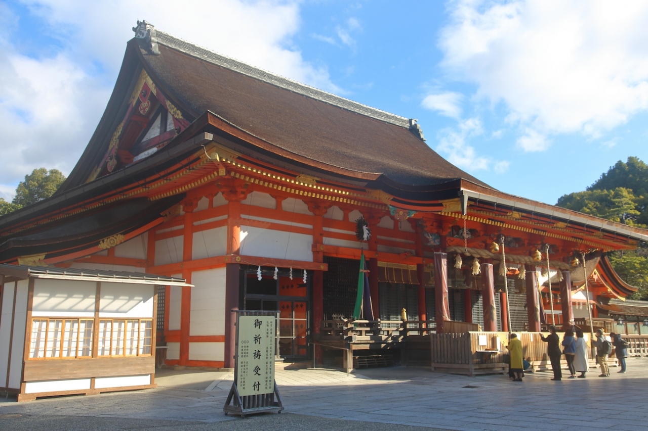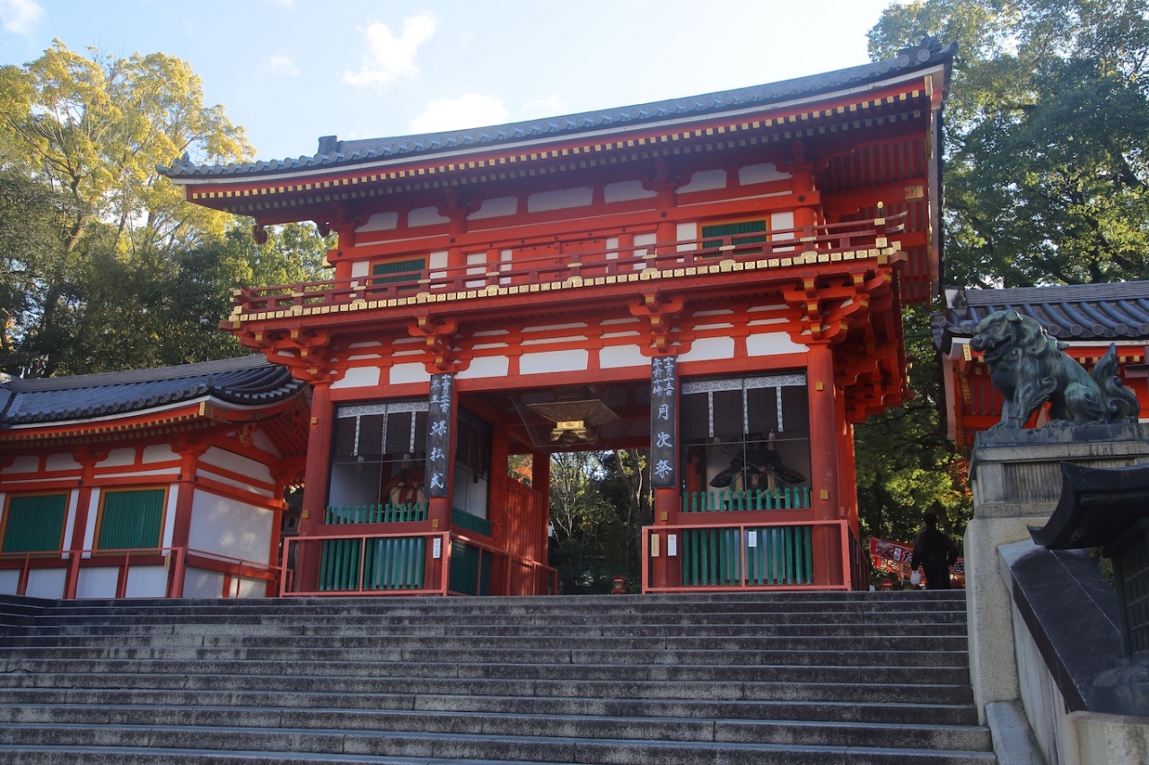 京都でも有名な神社の1つで祇園祭で有名ですが、見どころ自体はあまりないです。本殿は祇園造りの国宝で立派なもので、境内にある建造物も重要文化財ばかりですが、建築に興味がなければあまり目を引くようなものはありません。