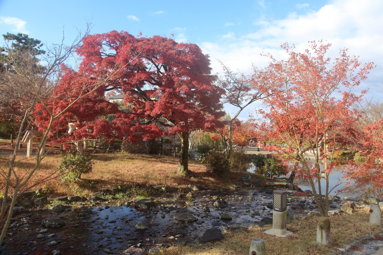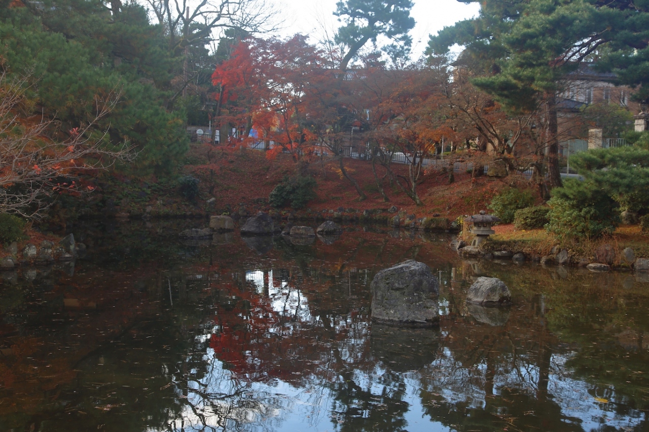 祇園しだれ桜で桜の名所として知られた場所なので紅葉には期待していませんでしたが、かなり楽しめました。永観堂や東福寺、北野天満宮のように一面の紅葉、というわけでは無いですが、ひょつたん池や水路、滝口周辺、坂本龍馬・中岡慎太郎像の周りなどに楓や紅葉が植えられていて、目を楽しませてくれました。12月上旬に訪問したので既に終りかけでしたが、その状態でもかなり楽しめたので、最盛期には素晴らしい景色が楽しめると思います。