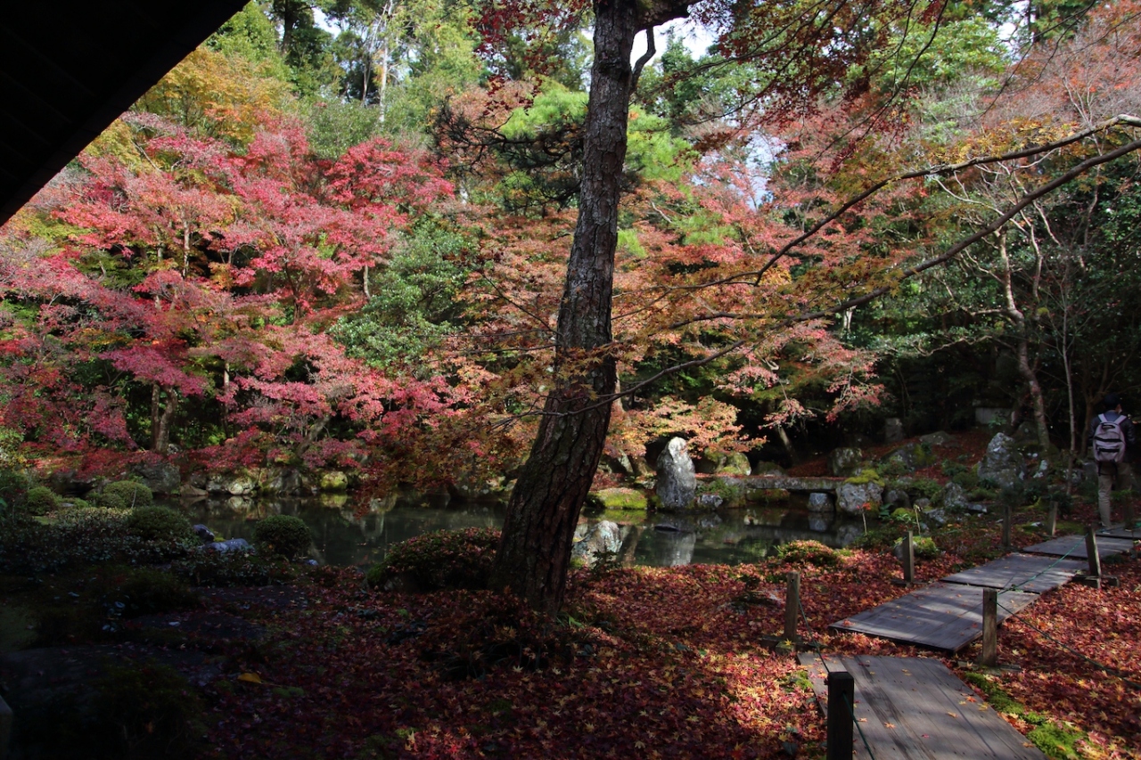 塔頭ですから規模は小さく、小ぢんまりとしています。ただ、周囲を紅葉に囲まれており、小さいながらも美しい光景を楽しめました。拝観料も不要ですし、あまり参拝客も訪れませんから、ゆっくりと紅葉を楽しめます。毘沙門堂から歩いて2~3分くらいで着けますから、毘沙門堂に参拝したら一緒に巡ってみては如何でしょうか。- 旅行時期