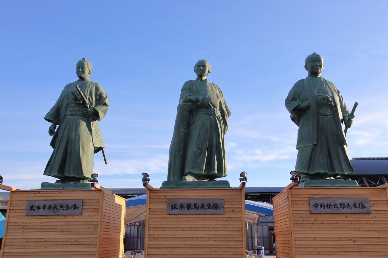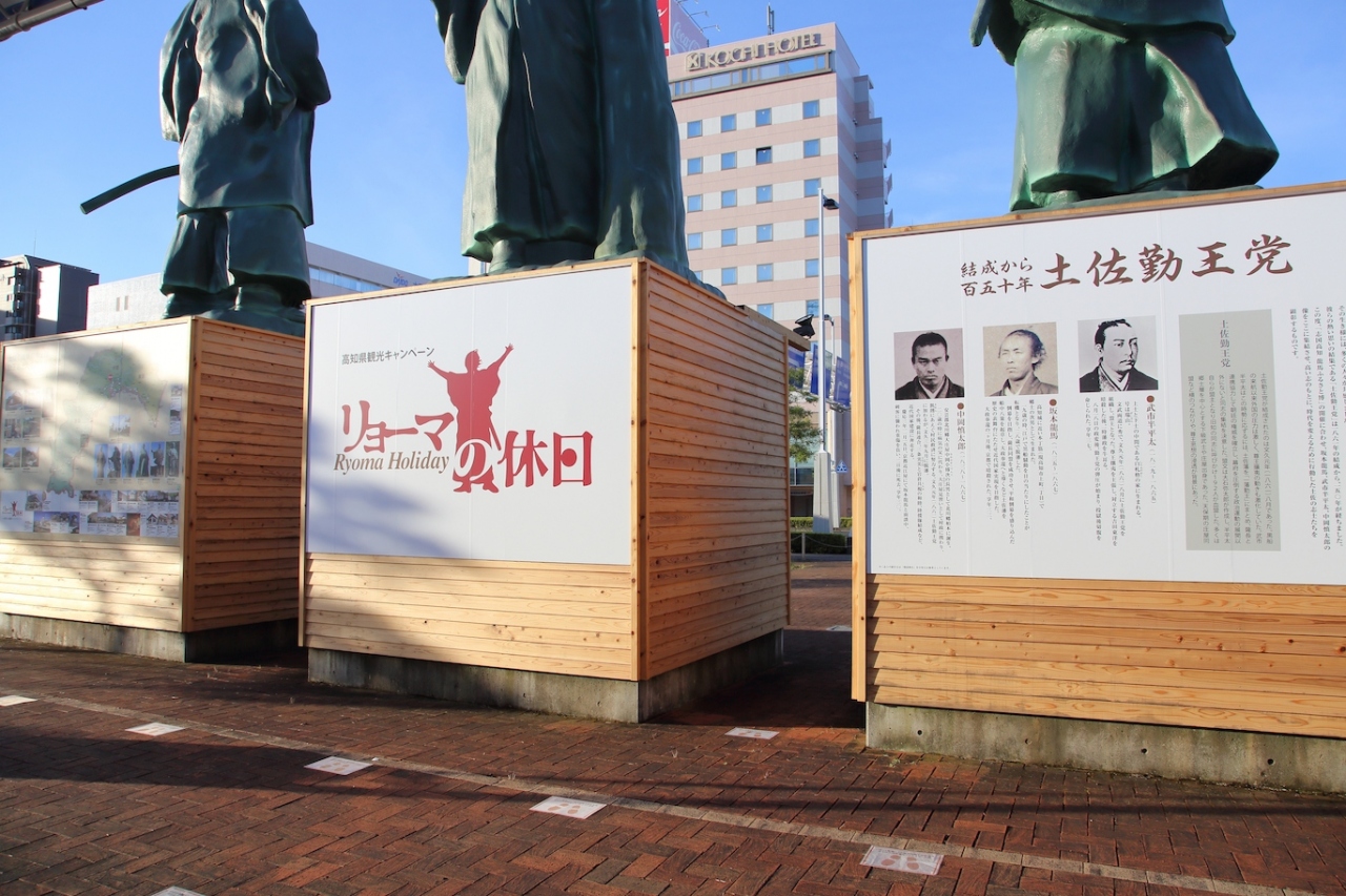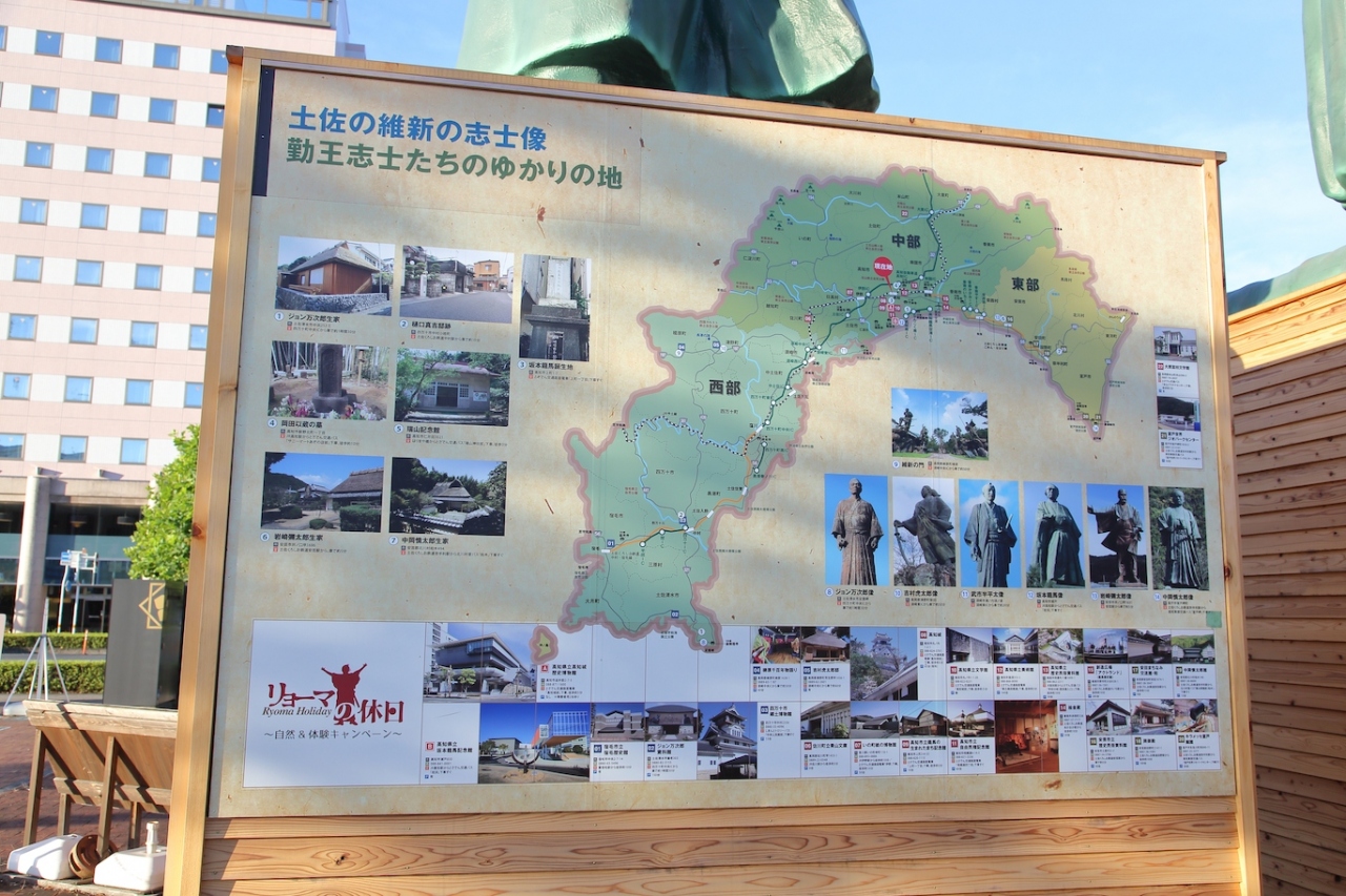 あと、像の台座の裏側になりますが、土佐勤王党の説明であったり、高知県内の幕末の志士達の銅像やゆかりの土地が大きく展示されています。高知駅を降りて、これから高知県内をどうやって周ろうかな、と考えている方には参考になると思います。- 旅行時期