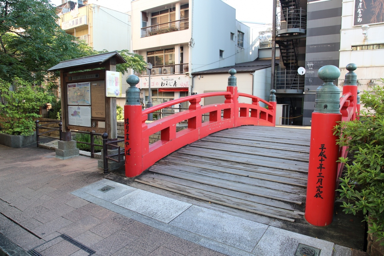 札幌の時計台、長崎のオランダ坂と並ぶ三大がっかり名所として有名な場所です。大分失礼な言い方とは思いますが、却ってがっかり名所として膾炙したお蔭で有名になったのでは?、という気もしますね。個人的には高知市内で一番有名な観光地ではないかな、と思っています。まぁ、元々は江戸時代に播磨屋が自分の便宜のために堀川に掛けた橋だそうですから、観光名所になる方が不思議なんですが。