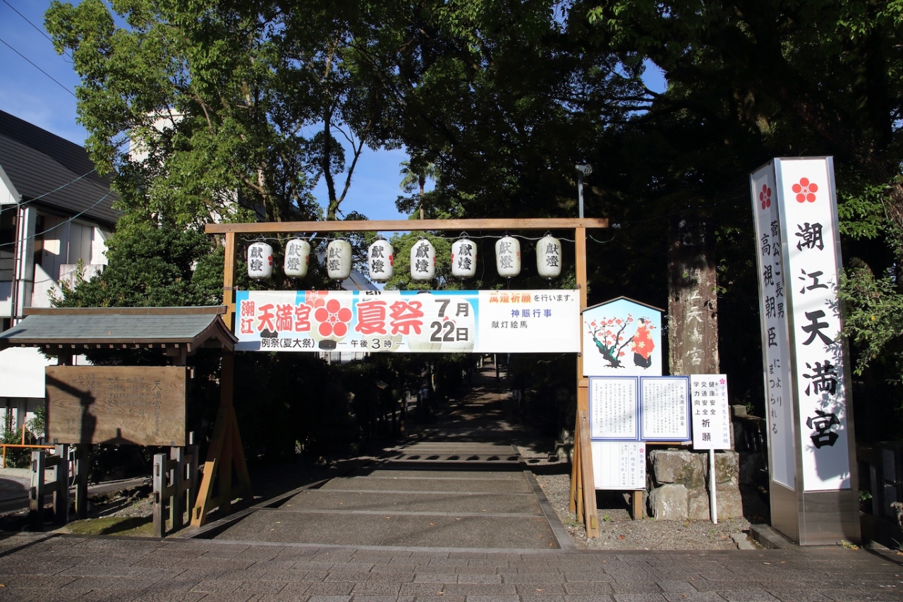 鏡川近くにある神社で、鏡川に沿う形で境内が広がっています。高知駅からは少し遠いので、とさでんを使っていくことをお勧めします。とさでんの大橋通電停で降り、南に真っ直ぐ進んで鏡川に掛かる天神大橋を渡れば直ぐです。なお、車の場合は天神大橋を渡った直ぐの所に駐車場があります。