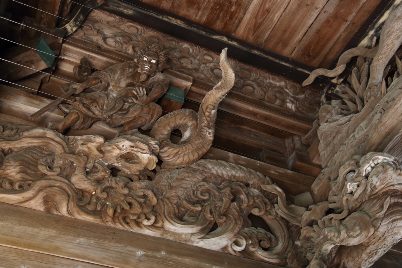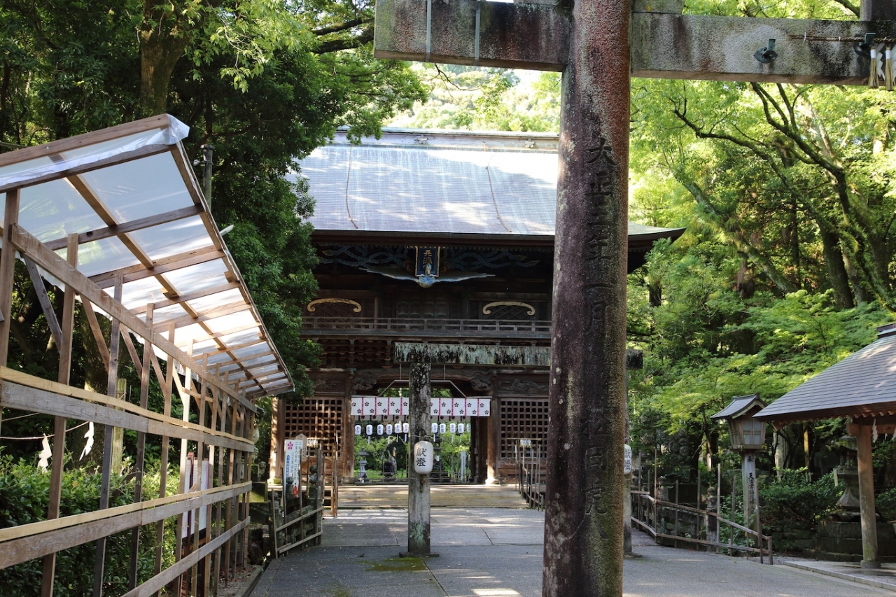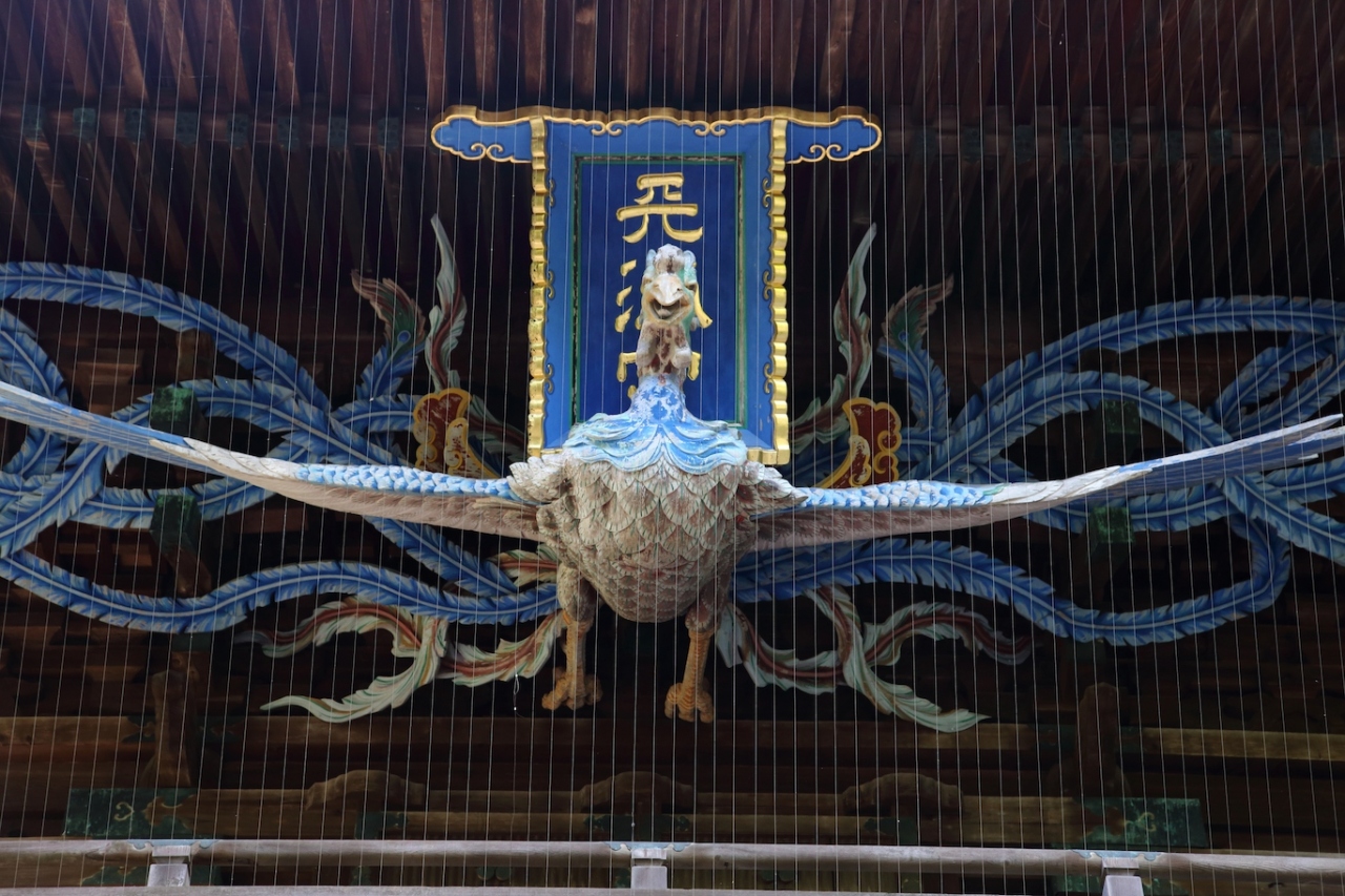 こちらには早朝に訪れましたが、参道の緑が濃く、爽やかな雰囲気でした。そのまま参道を進むと左手側に楼門が見えますが、こちらの楼門がかなり立派なもので、見応えがありました。特に飾られている彫刻は必見と思います。正面には鳳凰が飾られ、内側にも龍や獅子、仙人などが彫刻されています。参拝される際には、是非ご覧になってみてください。- 旅行時期