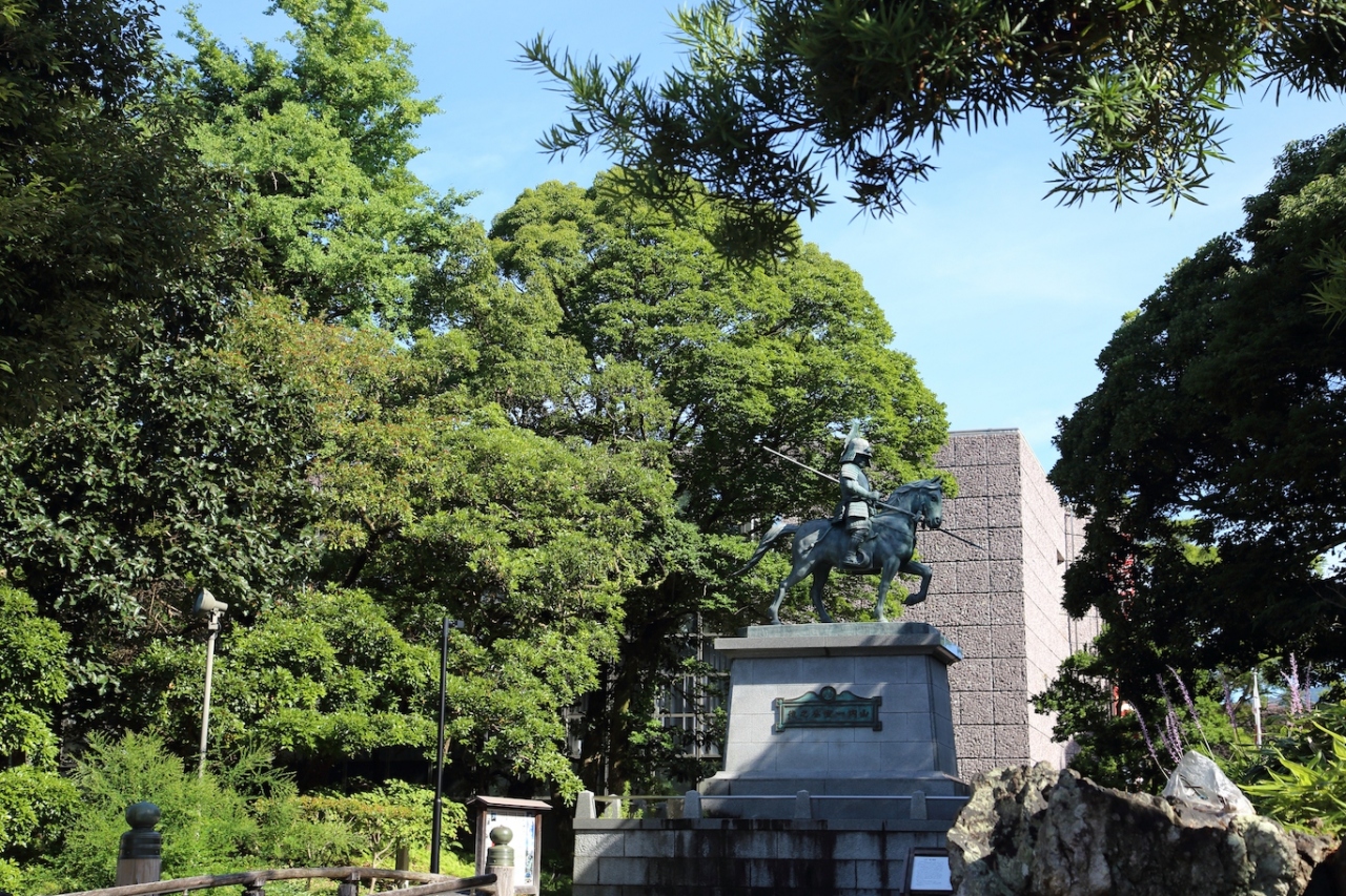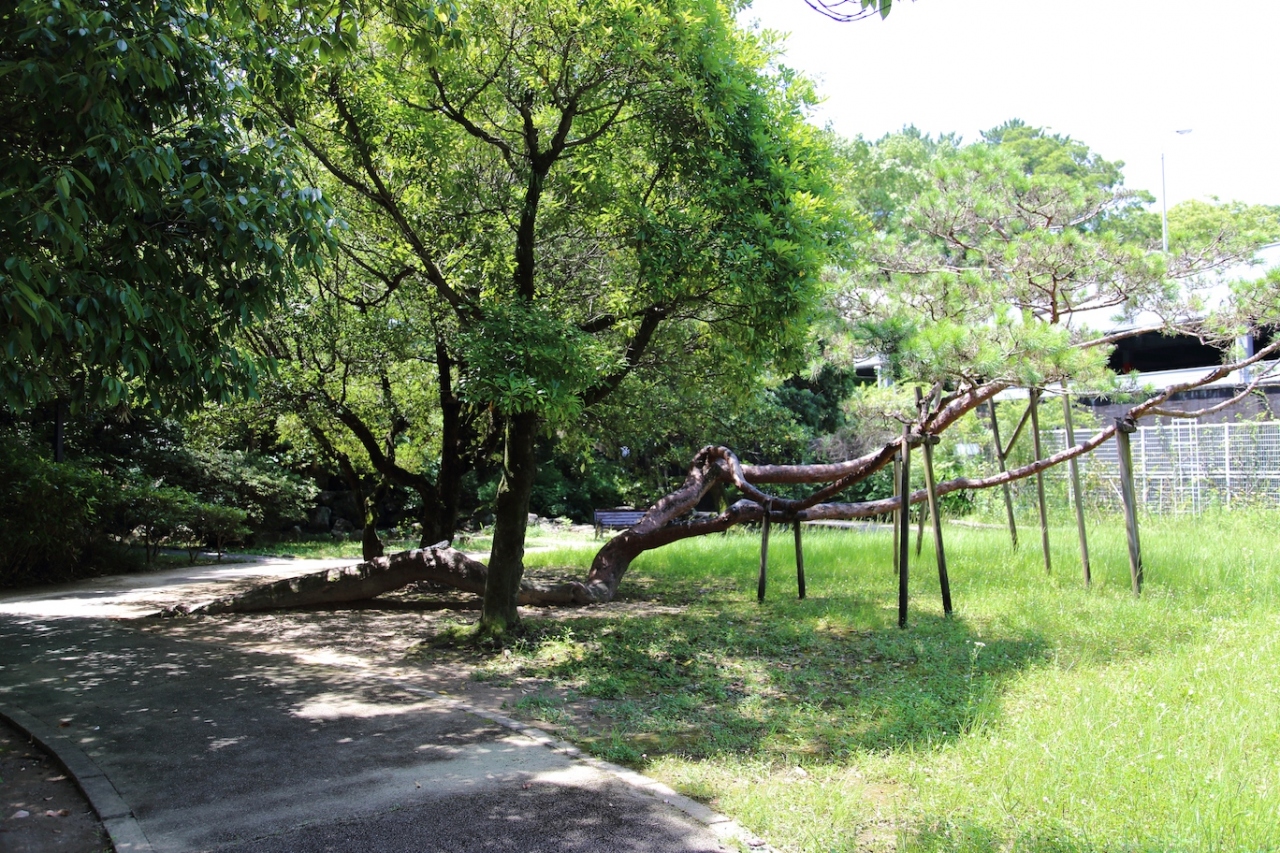 県民文化ホールの南側にある公園です。県庁前電停で降りて、南にまっすぐ行くとどん詰まりにあります。なお、Google Mapでは鷹匠公園と表示されています。藩政期には鷹匠が多く住んでいたので、そこからつけられたようです。