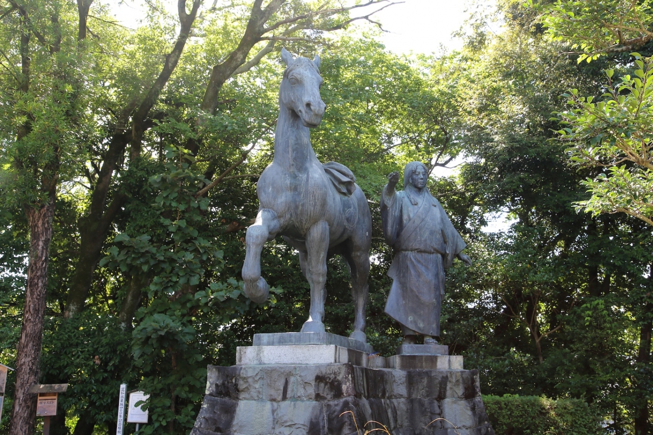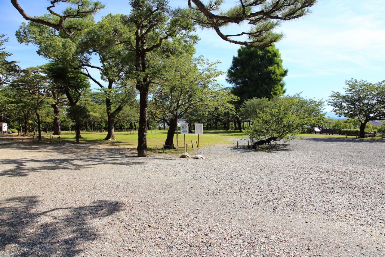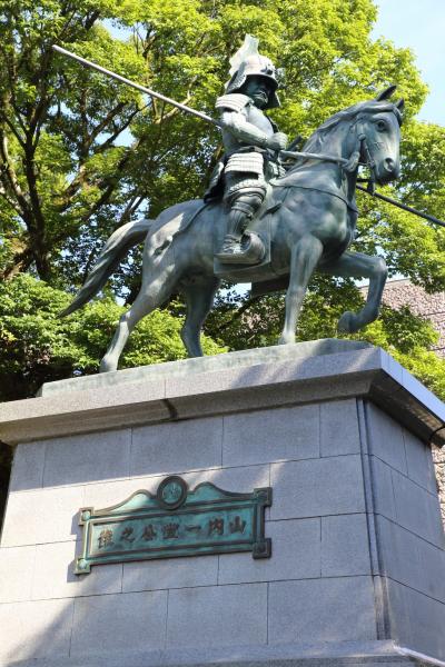 高知城の二の丸と三の丸を整備した公園なので、どちらかというとお城の一部という感じです。追手門の近くには山内一豊の像が、追手門を潜ったところには板垣退助の像が、最初の階段を上ったところには山内一豊の妻(千代?)と馬の像があります。石垣や櫓跡などの遺構だけでなく、江戸時代の詰門や多門櫓も残っていて、そちらも間近で見ることができます。