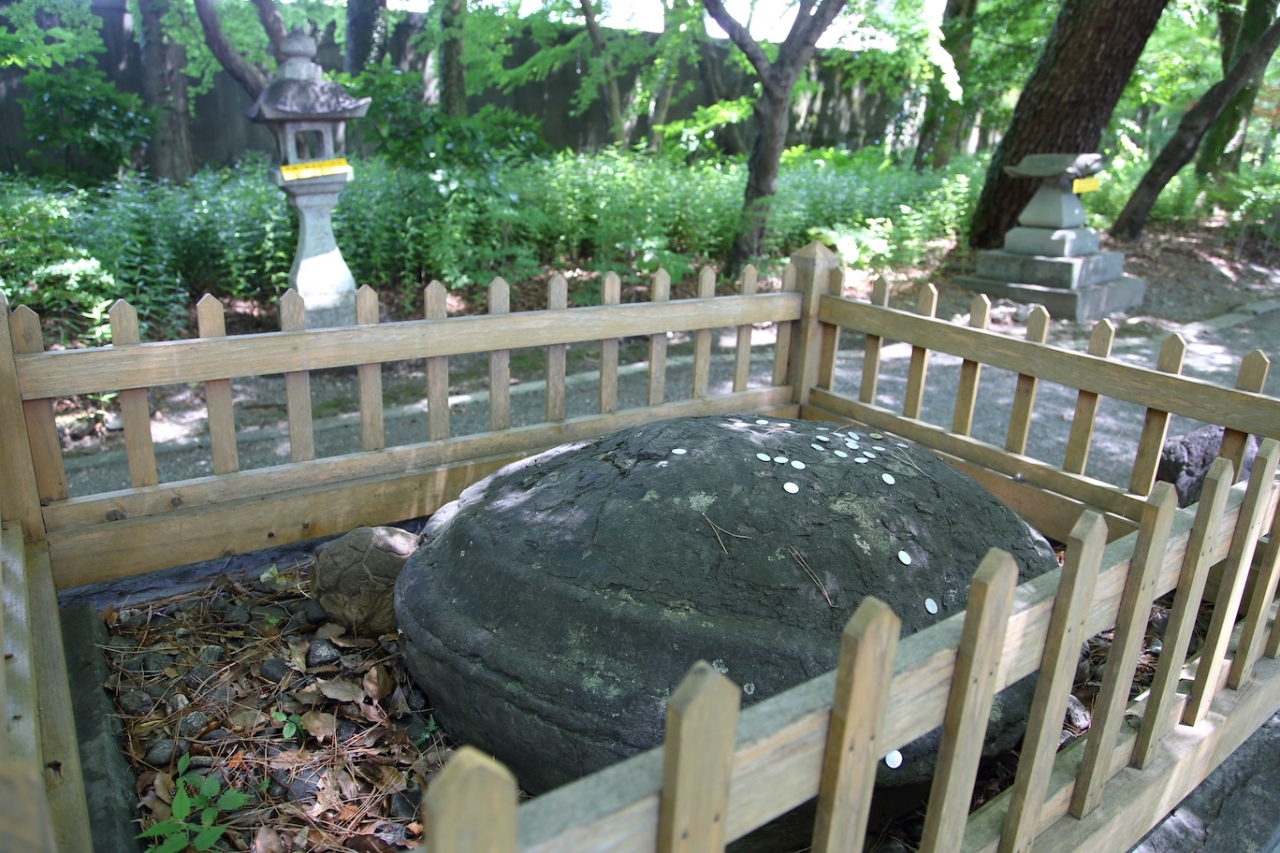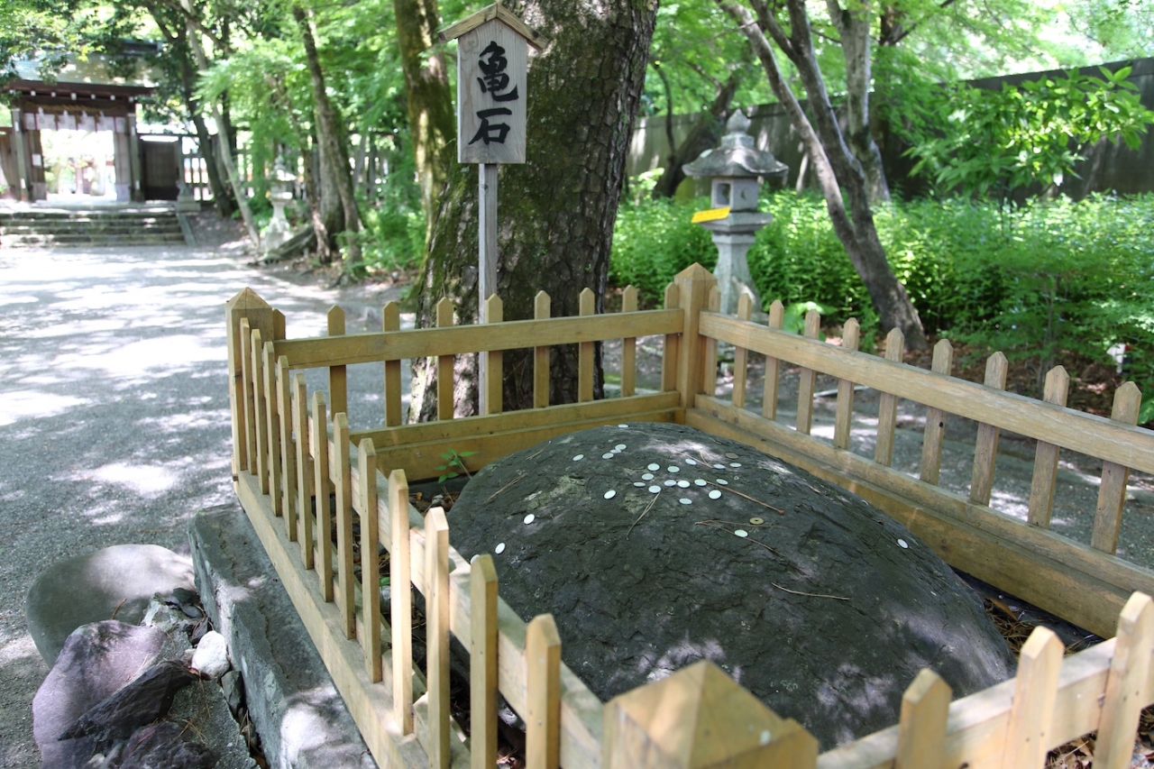 社殿は昭和に作られたコンクリート製なので正直見どころはありませんが、参道の雰囲気が素晴らしいです。木々と灯篭が並び、静謐な雰囲気を醸し出していました。また、参道の途中にある亀石が結構本物っぽく、一見の価値はあると思います。西側から見るとかなりそっくりです。境内はそれほど広くなく、社殿と反対側に山内容堂公の銅像があります。