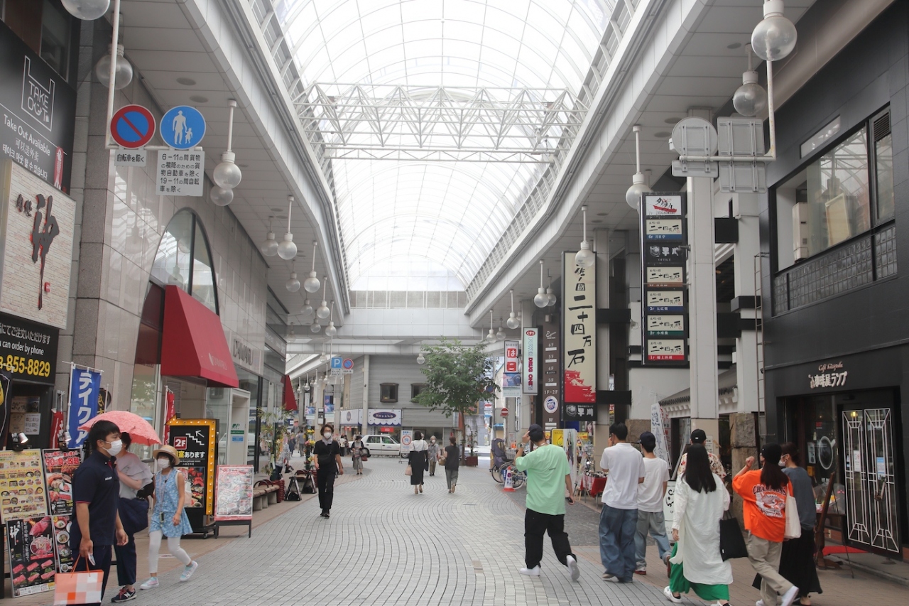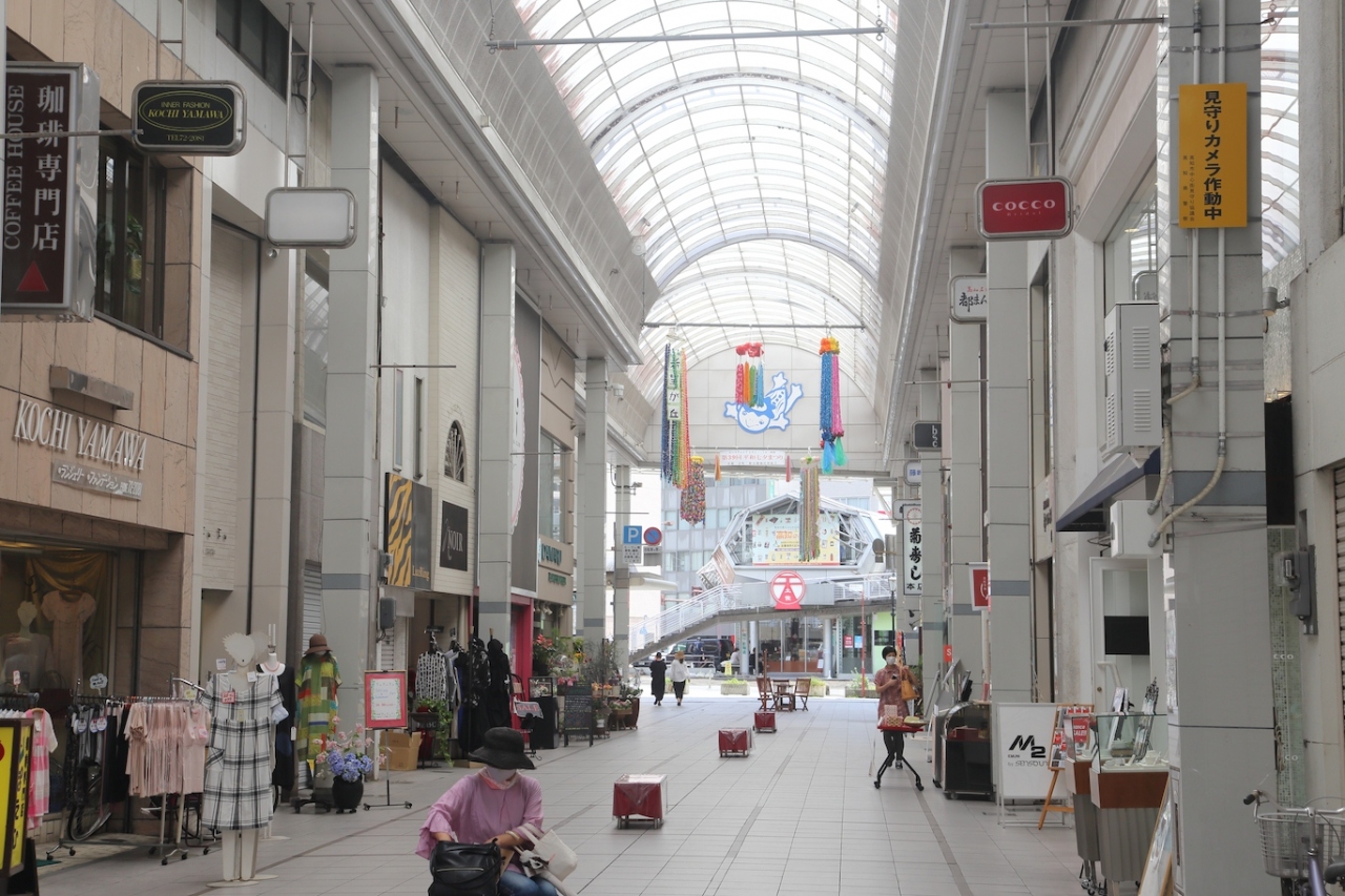 高知市内で一番大きなアーケード街だけあり、大丸のようなデパートから土産物店、飲食店、服飾店、携帯電話等々の店舗が揃っていて、大抵のものはこちらで購入できると思います。カツオのたたきで有名な飲食店もこちらに出店しているので、食事にも困らないと思います。