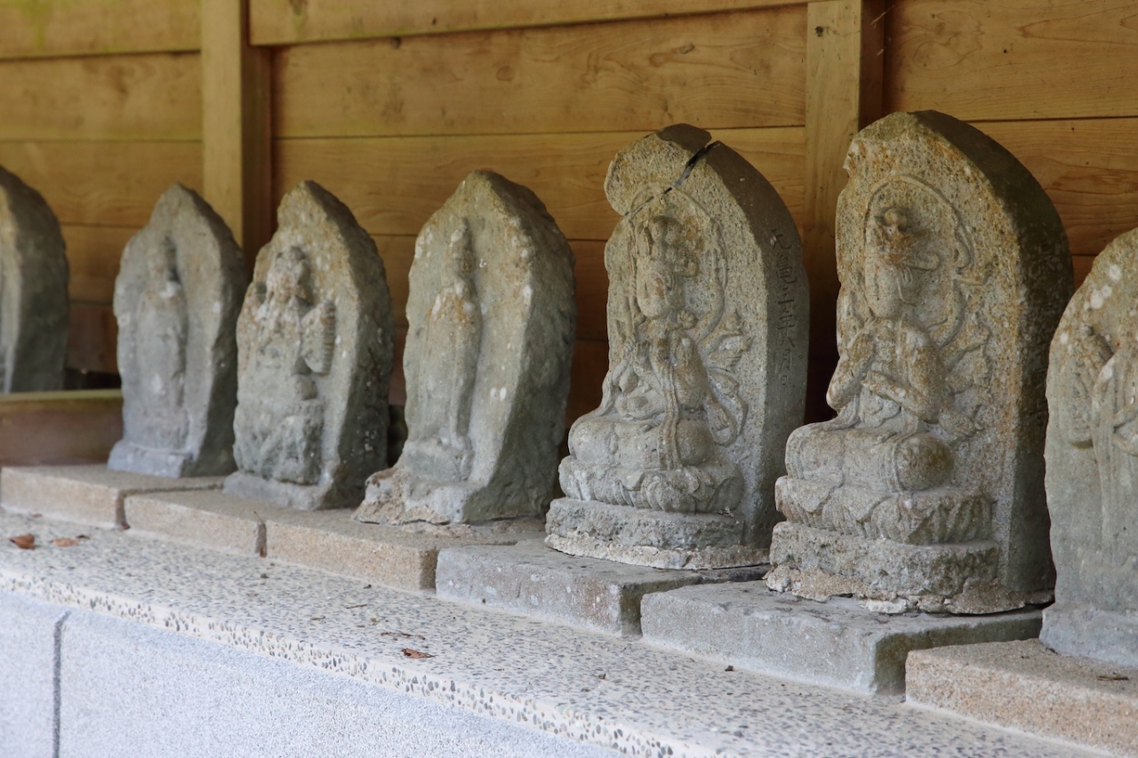 境内に入ると樹齢1000年を超える大イチョウが出迎えてくれます。古刹だけあり、本堂や観音堂は歴史を感じさせるものです。また、観音堂の脇には石仏群や閻魔堂も置かれています。ただ、残念なのが、どの堂宇も若干荒れ気味になっていることです。本堂は内陣はともかく、外観がかなり傷んできているように見えます。観音堂も堂宇の修復は行われているようですが、内陣の本尊や周辺仏、厨子などは金箔や漆の剥げが目立ち、少々残念です。閻魔堂も同様でした。